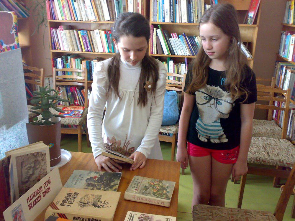 4 травня бібліотекар філії Бахмат Н. М. до Дня Перемоги провела для учнів ЗОШ №3 бесіду-ушанування "Пройдуть роки, десятки років... Цього ніколи не забути...". Діти прослухали розповідь про ратний подвиг воїнів які боронили Вітчизну, про мужність і героїзм маленьких патріотів, які тимчасово опинились на окупованій території і стали розвідниками. Зачитувались уривки з оповідання Морозова В. "У розвідку йшов хлопчина" про героя Марата Казея. Переглянули виставку "Маленькі герої Великої війни". А в кінці разом заспівали славнозвісну "Катюшу".