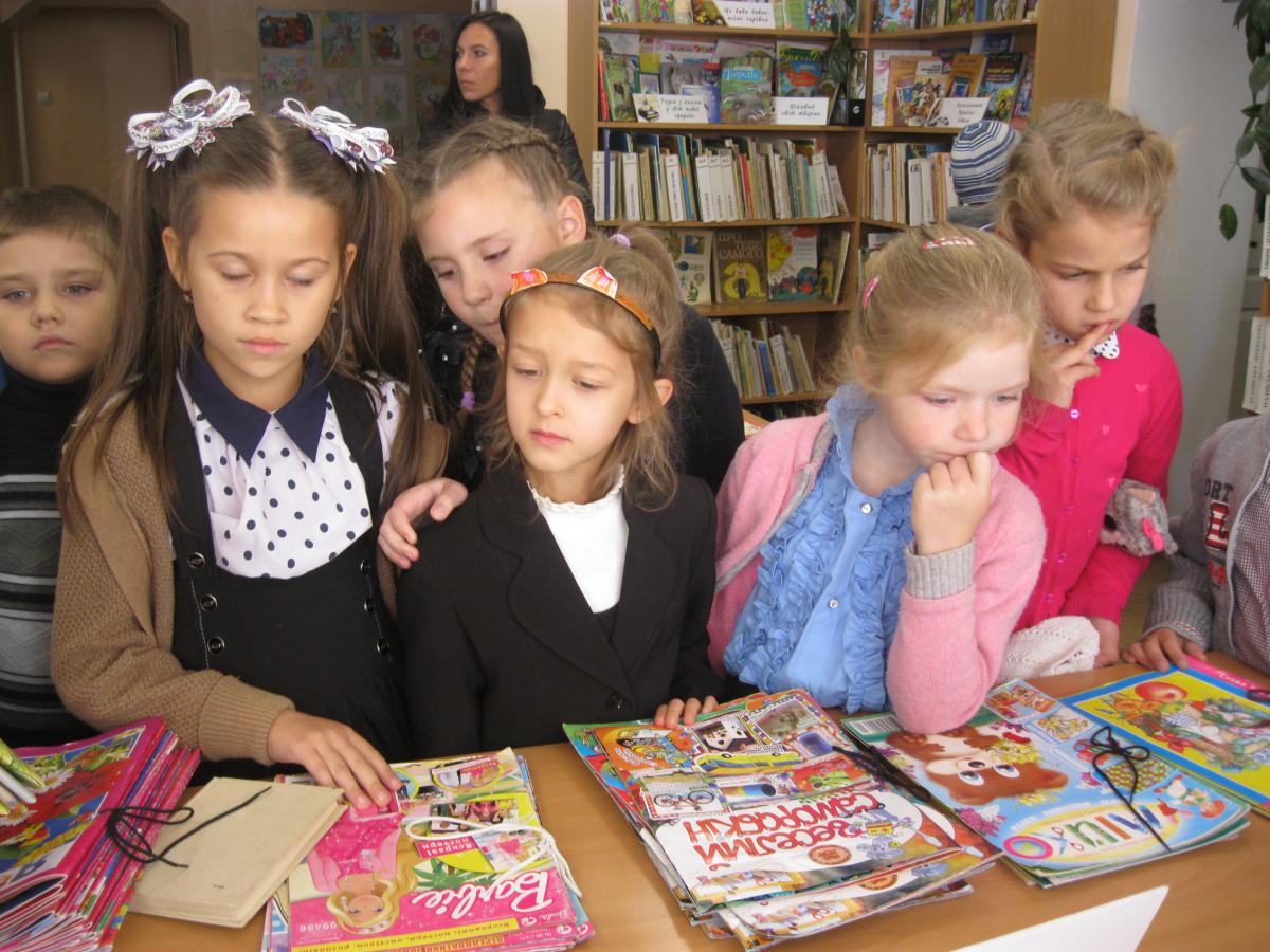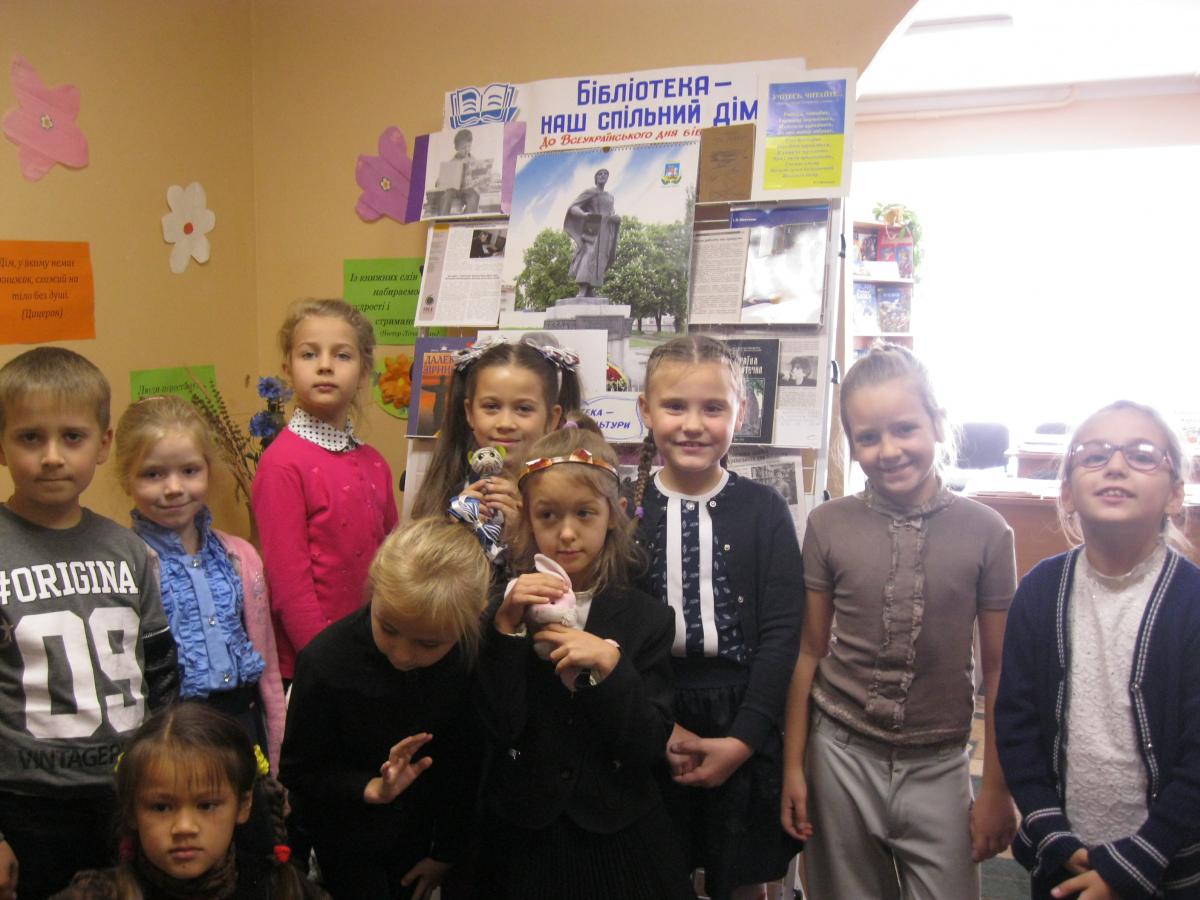 Провідний бібліотекар відділу обслуговування 1-4 класів Тетяна Руденко провела гостей бібліотечними стежинами. На дітей чекало безліч сюрпризів: бібліотекарі підготували веселий віршограй «Як всі звуть цей гарний дім, що книги живуть в нім», літературні ігри «Чи знаєш ти героїв книг?» та «З якої ми казки?»
