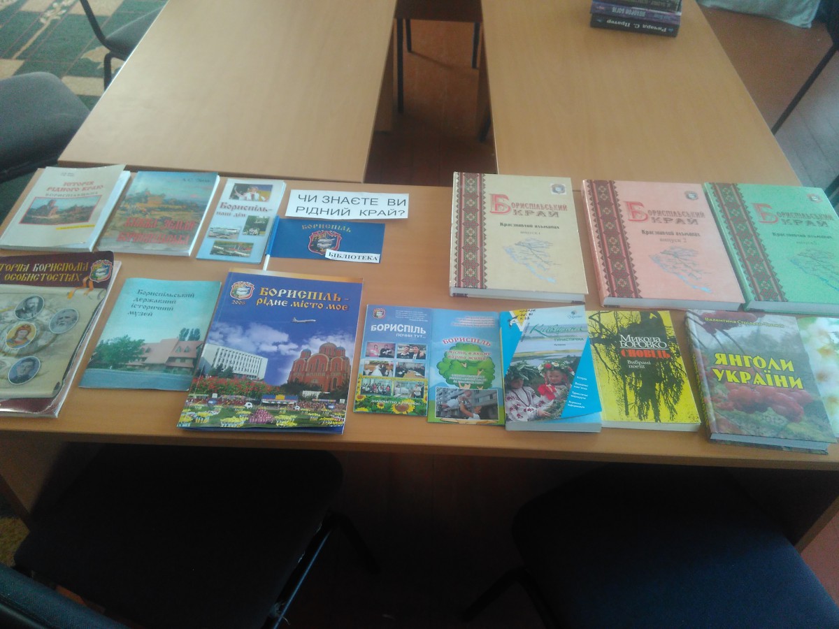Провідний бібліотекар Ніна Бахмат ознайомила читачів з історичною довідкою про Бориспіль, розповіла про письменників краю. Провела вікторину-подорож «Чи знаєте ви Бориспіль?» про історичне минуле міста, під час якої діти відшукували відповіді на запитання в книгах, представлених на краєзнавчій виставці «Моє славне місто». Кожен зміг перевірити себе на знання історії рідного краю.