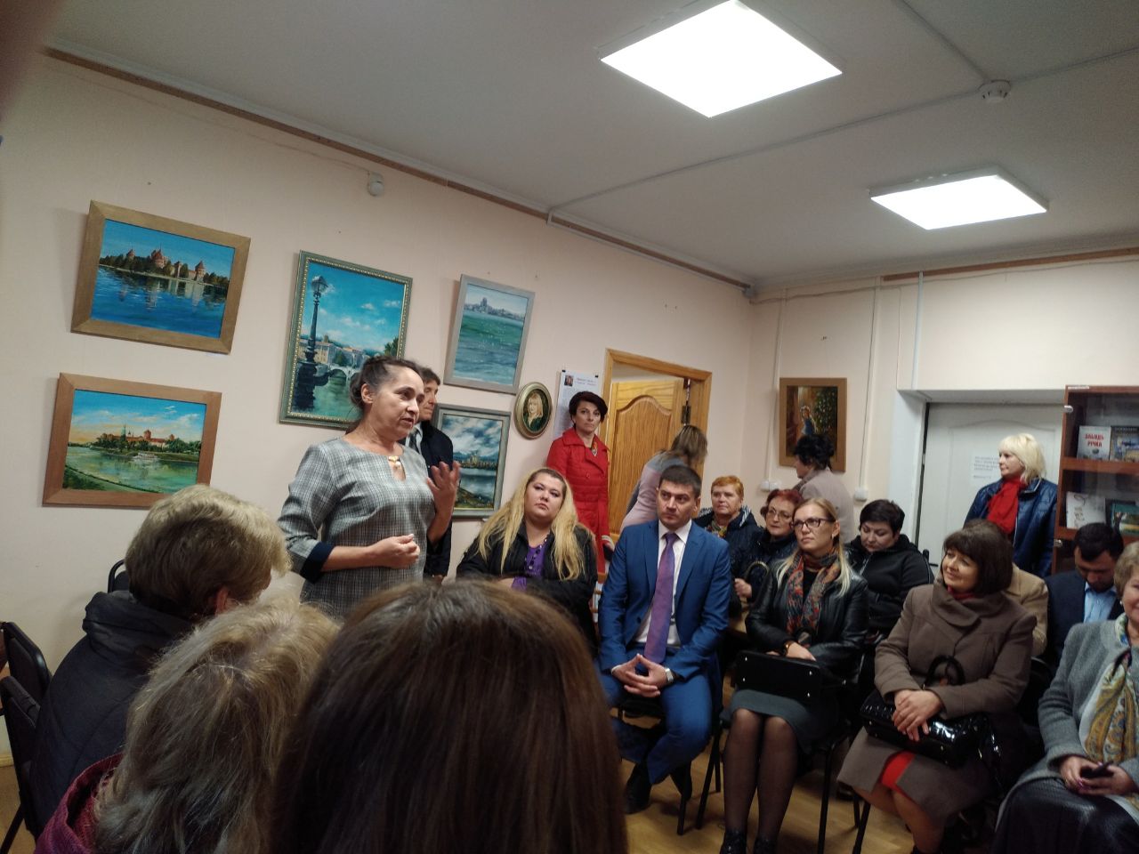 Директор Бориспільськоі міської централізованої бібліотечноі системи Кручиніна Жанна Борисівна провела ознайомчу екскурсію залами міськоі бібліотеки. Гості були вражені просторістю площі та масштабом роботи нашої бібліотеки, кількістю заходів, проектами та різноманітним дозвіллям відвідувачів закладу. Директор висвітлила історичні віхи розвитку бібліотечної галузі міста, представила основні досягнення колективу МЦБС і провела цікаву розповідь по виставці живописних картин нашої землячки, відомої телеведучої і журналістки Світлани Леонтьєвої «Промінь Світла». В дарунок, як і годиться на святі, всі представники бібліотек Київської області отримали книги Валентини Стрілько та збірки бориспільських поетів Миколи Федорова і Петра Дениска.