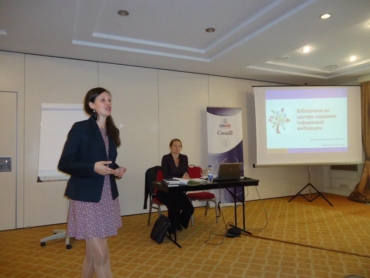 Змістовну інформацію по проведенню виборів надали: Наталія Балюк – координатор програм Міжнародної фундації виборчих систем та Надія Пашкова – координатор ДОО ВГО "Комітет виборців України". Огляд програми та цілей тренінгу, визначення очікувань від тренінгу зробив Віталій Чумак – представник Ради міжнародних наукових досліджень та обмінів.