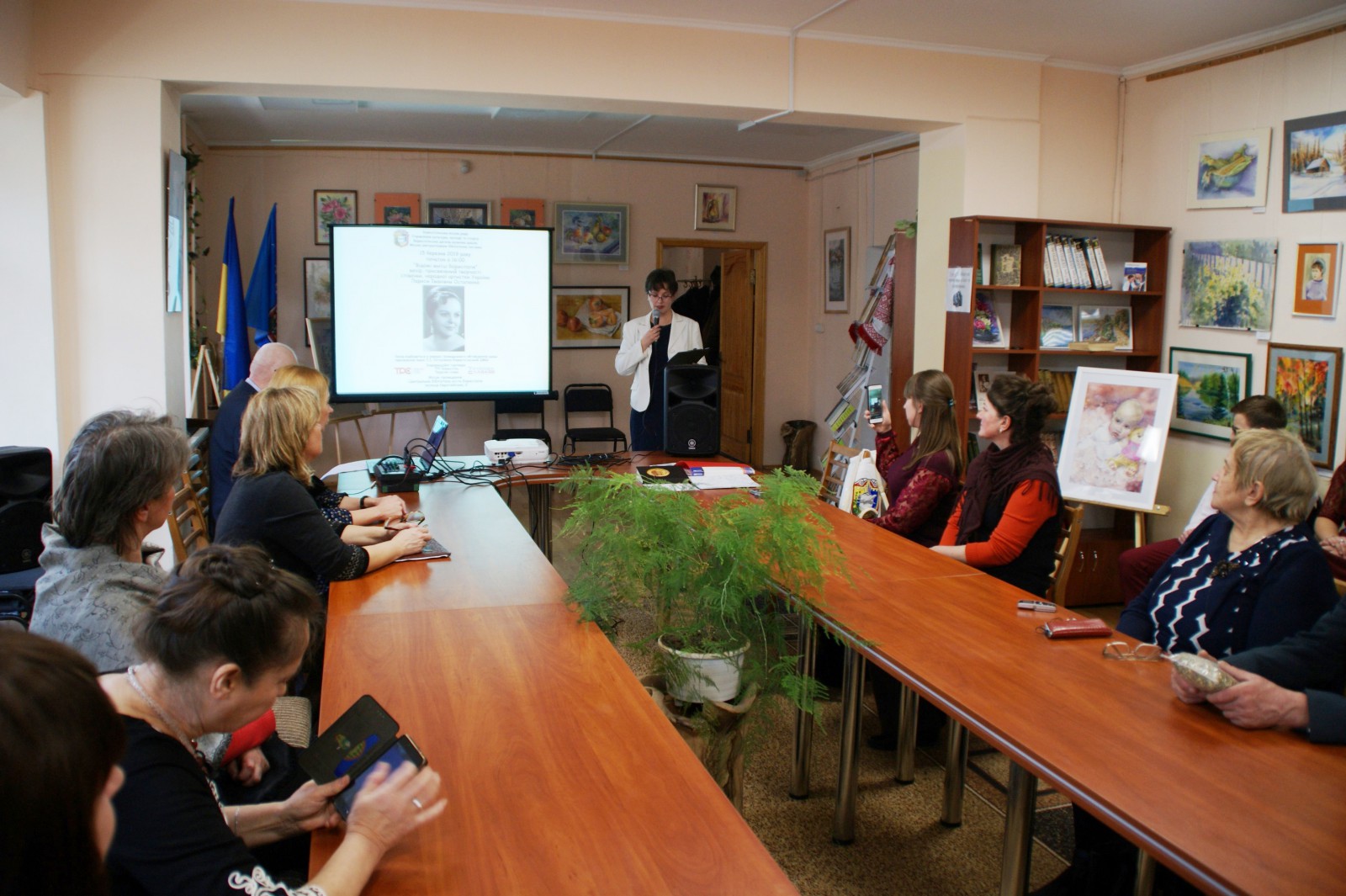 19 березня 2019 в бориспільській міській бібліотеці відбувся мистецький захід «Творимо добро на землі». В ошатній залі зібралися рідні, майстри, художники, письменники, читачі бібліотеки, щоб вшанувати Білокінь Валентину Василівну, людину праці, людину, яка все життя живе поруч з нами, яку всі ми добре знаємо, кожен день маємо можливість спілкуватись з нею. Це талановита, творча, закохана у рідний Бориспіль, в Україну та творчість майстриня, яка святкує 25- річний ювілей творчої діяльності. Творча діяльність Валентини Василівни була неодноразово пошанована керівництвом міста та області. І ця зустріч не стала виключенням. Начальник Управління культури, молоді та спорту Бориспільської міської ради висловила ювілярці Подяку і вручила їй квіти ти сувенірну кружку з логотипом міста Бориспіль.