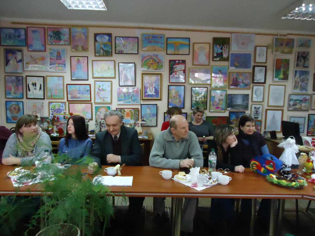 Працівники бібліотеки із задоволенням допомогли Олені Іванівні і Людмилі Леонідівні – забезпечили технічну частину зустрічі. Всім присутнім було приємно переглянути відео ряд, підготовлений бібліотекарями та сюжет про майстер-клас Олени Кравчун, знятий працівниками каналу ТРС Бориспіль.