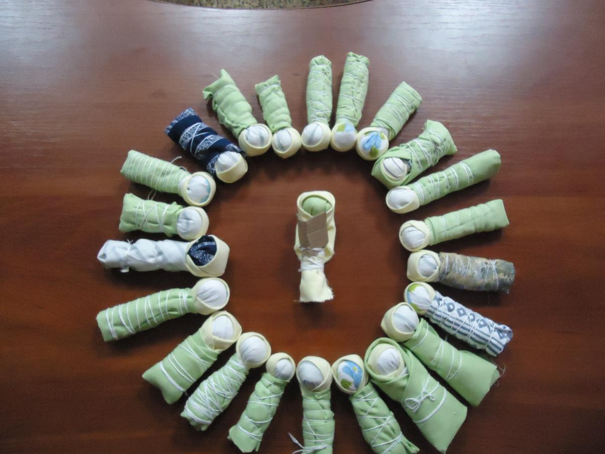 Майстрині добре підготувались до своїх творчих звітів: накрили на стіл чай, солодощі та принесли з собою заготовки ляльок-мотанок для проведення майстер-класу. До речі, кожен учасник заходу змотав свою лялечку-немовлятко.