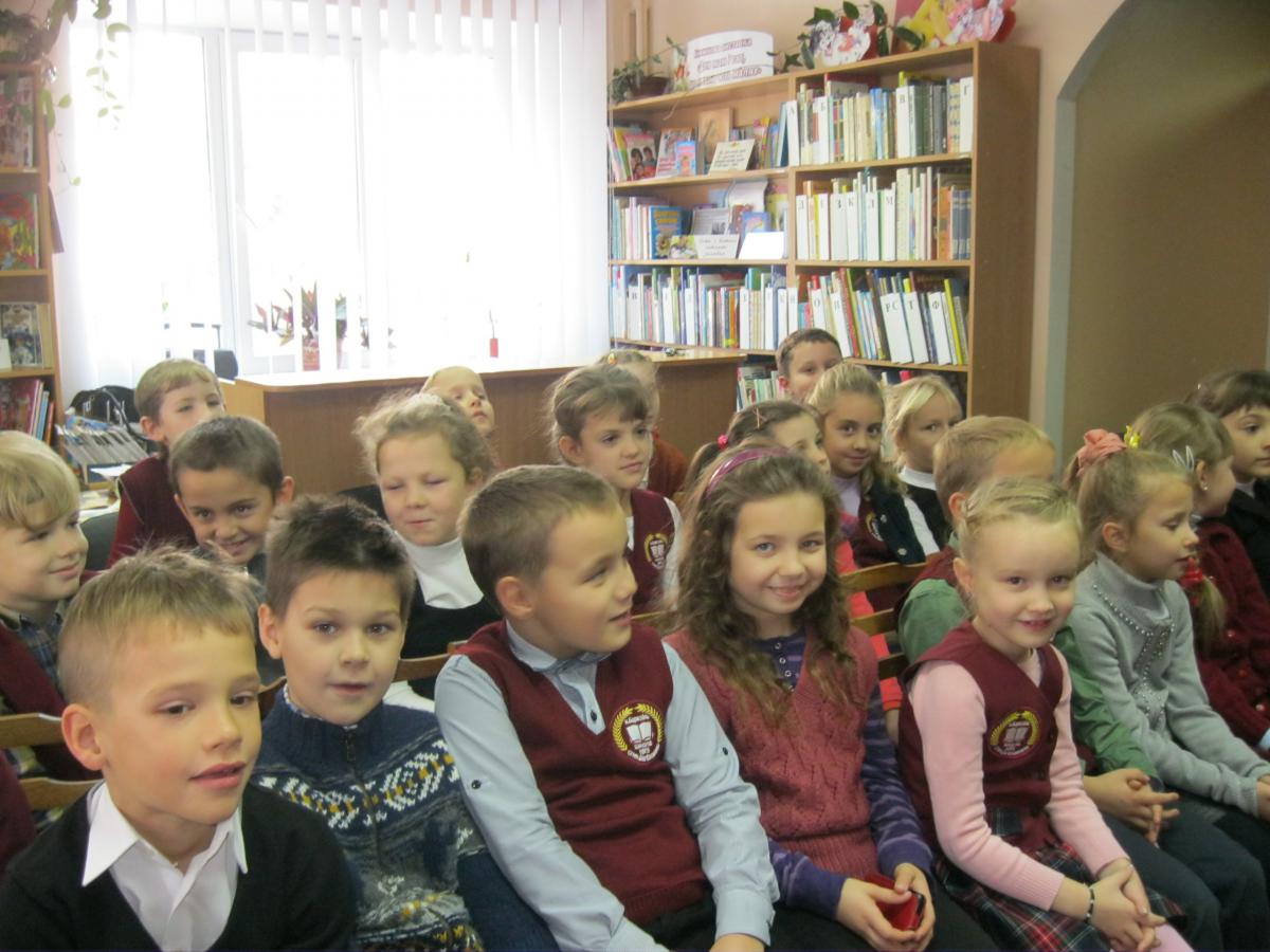 4 листопада до дитячої міської бібліотеки на бібліотечний урок «Книжковий дивограй запрошує на гостину» завітали читачі-учні 2-б класу школи лінгвістики разом зі своїм класним керівником Кириленко О.І. та шкільним бібліотекарем Дубровською Т.В.