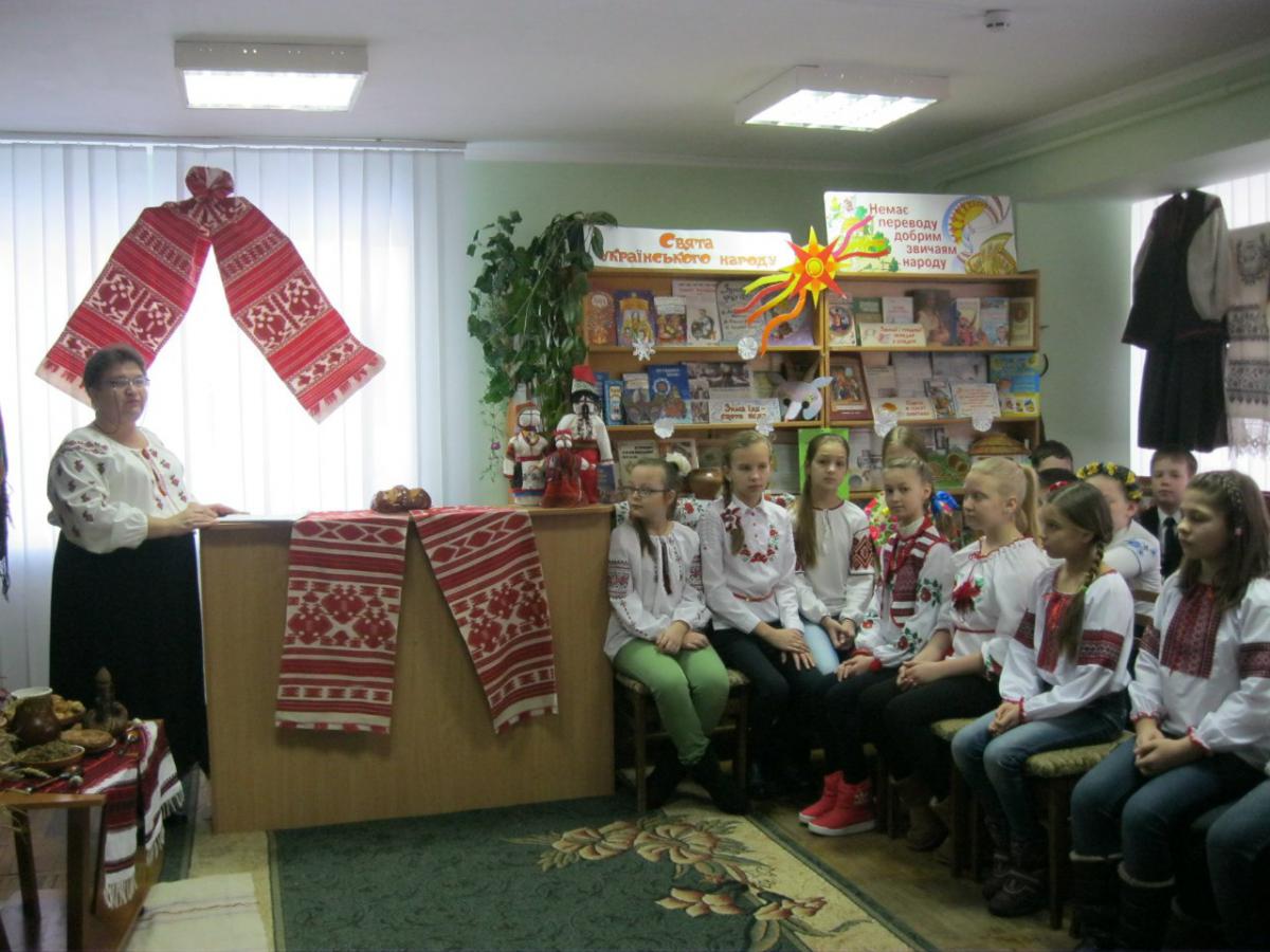 І цього ж дня в бібліотеці відбувся бібліотечний урок «Мандруємо бібліотечною країною», в якому взяли участь читачі-учні 2-а класу ЗОШ №5. Діти не тільки познайомилися з структурою бібліотеки, а також з періодичними виданнями, які пропонує дитяча бібліотека та етнографічним куточком «Шануємо традиції».