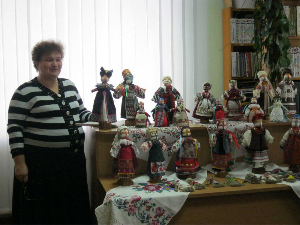 В бібліотеці була організована виставка робіт майстрині – своєрідний вернісаж ляльок-мотанок.