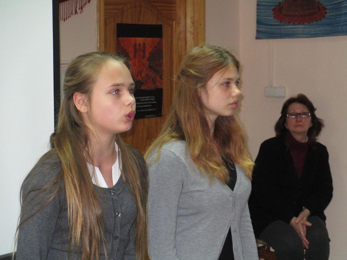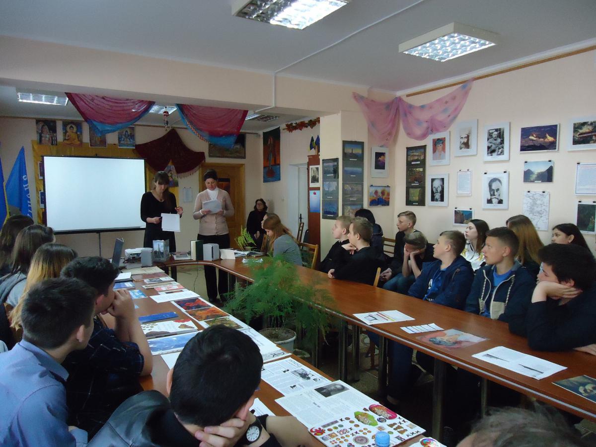 Поетична композиція "Чорнобилю, біль мій всенародний" прозвучала у виконанні вихованців літературно - музичного салону Наталії Осипенко - Слави Савост'янової та Дар'ї Авдєєвої. Діти отримали змістовну інформацію щодо сучасного становища зони відчуження, ілюстровану актуальними відео з інтернету.
