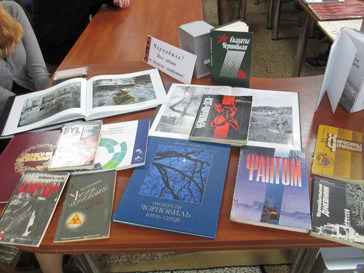 Тема Години-нагадування була розкрита книгами з книжково - ілюстративної виставки "Чорнобиль! Його забуть не дозволяє майбутнє!"