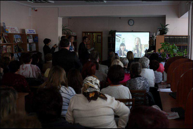 28 вересня з нагоди Всеукраїнського дня бібліотек у центральній бібліотеці відбувся круглий стіл «Бібліотека у просторі і часі» за участі бібліотечних працівників Бориспільщини. На святі була презентовано пункт публічного доступу до Інтернету та можливості використання Інтернет і бібліотеці. З привітним словом по скап-зв΄язку до присутніх звернулась менеджер проекту «Бібліоміст» Меган О΄Конор. З вітанням до присутніх звернулась заступник міського голови Пасенко Л.В., начальник віділу культури, сімї, молоді та спорту Погребна Н.В., депутат міської ради Шапіро Б.А., депутат обласної ради Кушніков В., представники районного відділу культури та друзі бібліотеки. Присутнім були продемонстровані нові послуги бібліотеки з використанням Інтернет – скайп – дзвінок до Центральної бібліотеки округу Домодєдово Московської області. Музичне вітання подарували викладачі Бориспільської дитячої музичної школи.