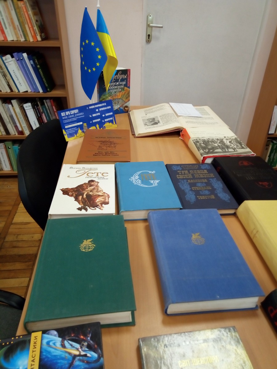 Увазі користувачів було запропоновано розкладку літератури з фондів бібліотеки. Читачам були представлені генії слова за географічною ознакою – письменники Європи: Віктор Гюго (Франція); Астрід Ліндгрен (Швеція); Агата Крісті (Велика Британія); Стефан Цвейг (Австрія); Йоган Гете (Німеччина); Мігель де Сервантес (Іспанія); Станіслав Лем (Польща); Данте Аліг’єрі (Італія); Моріс Метерлінк (Бельгія); Ярослав Гашек (Чехія). Відвідувачі дізнались про творчість письменників, які залишили нам воістину неоціненну спадщину – свої твори.