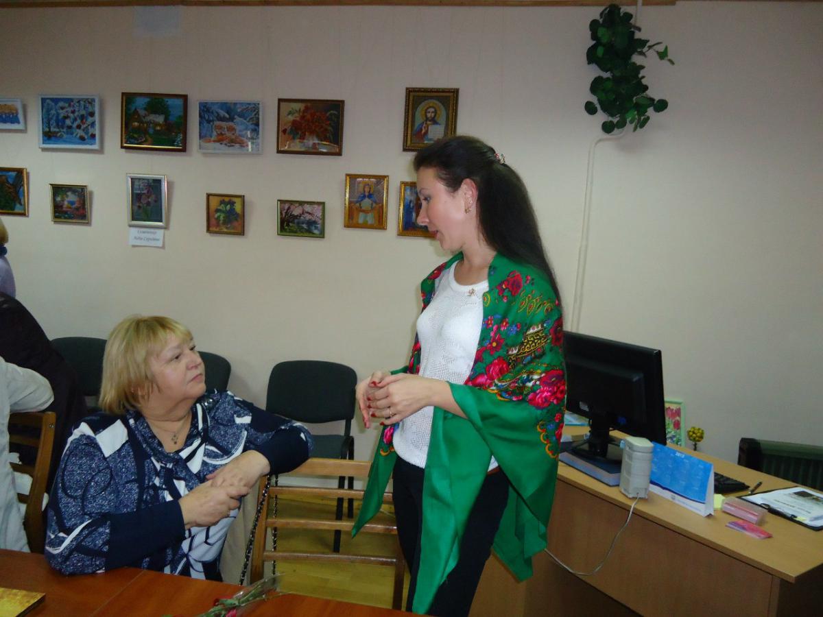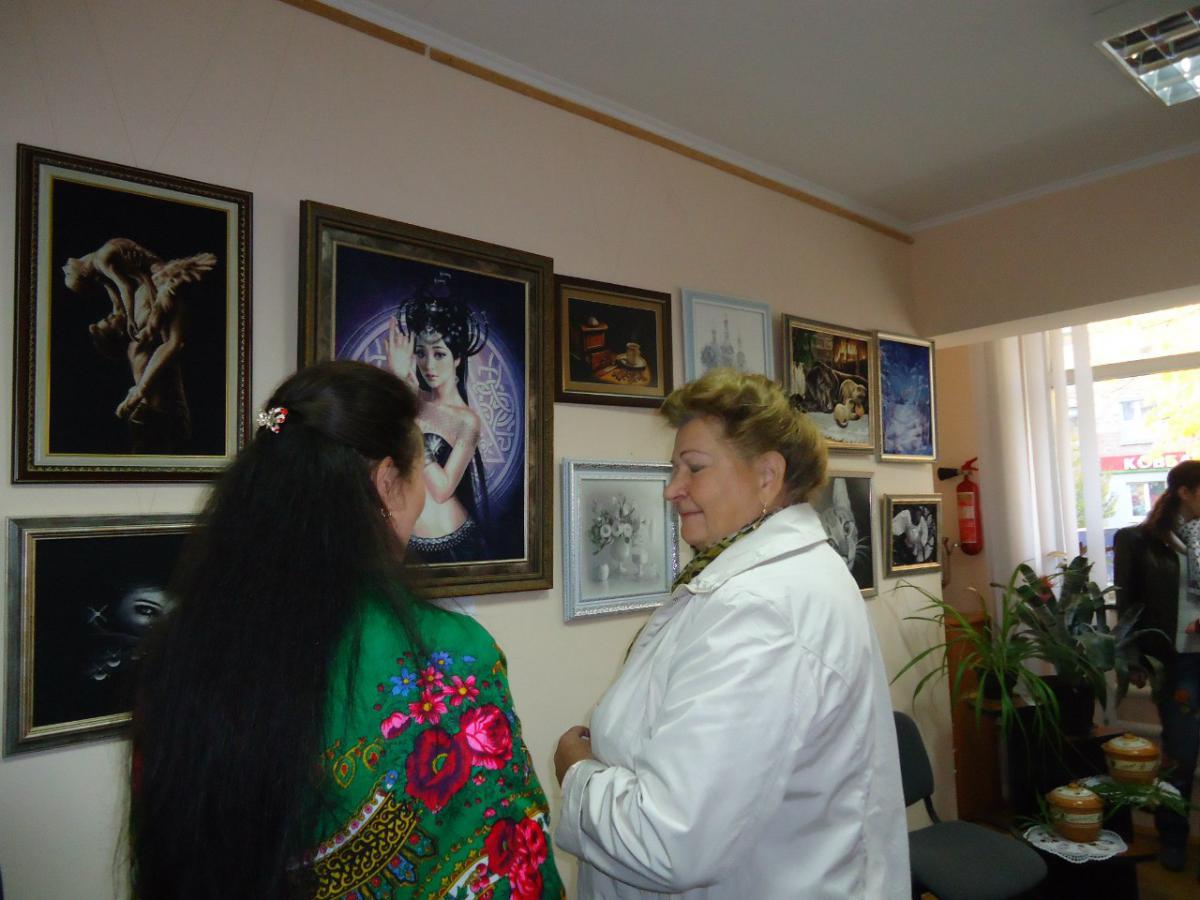 На вечорі була презентована виставка вишитих картин Лідії Семененко та Надії Патрікац «Добро душі дарую людям!».
