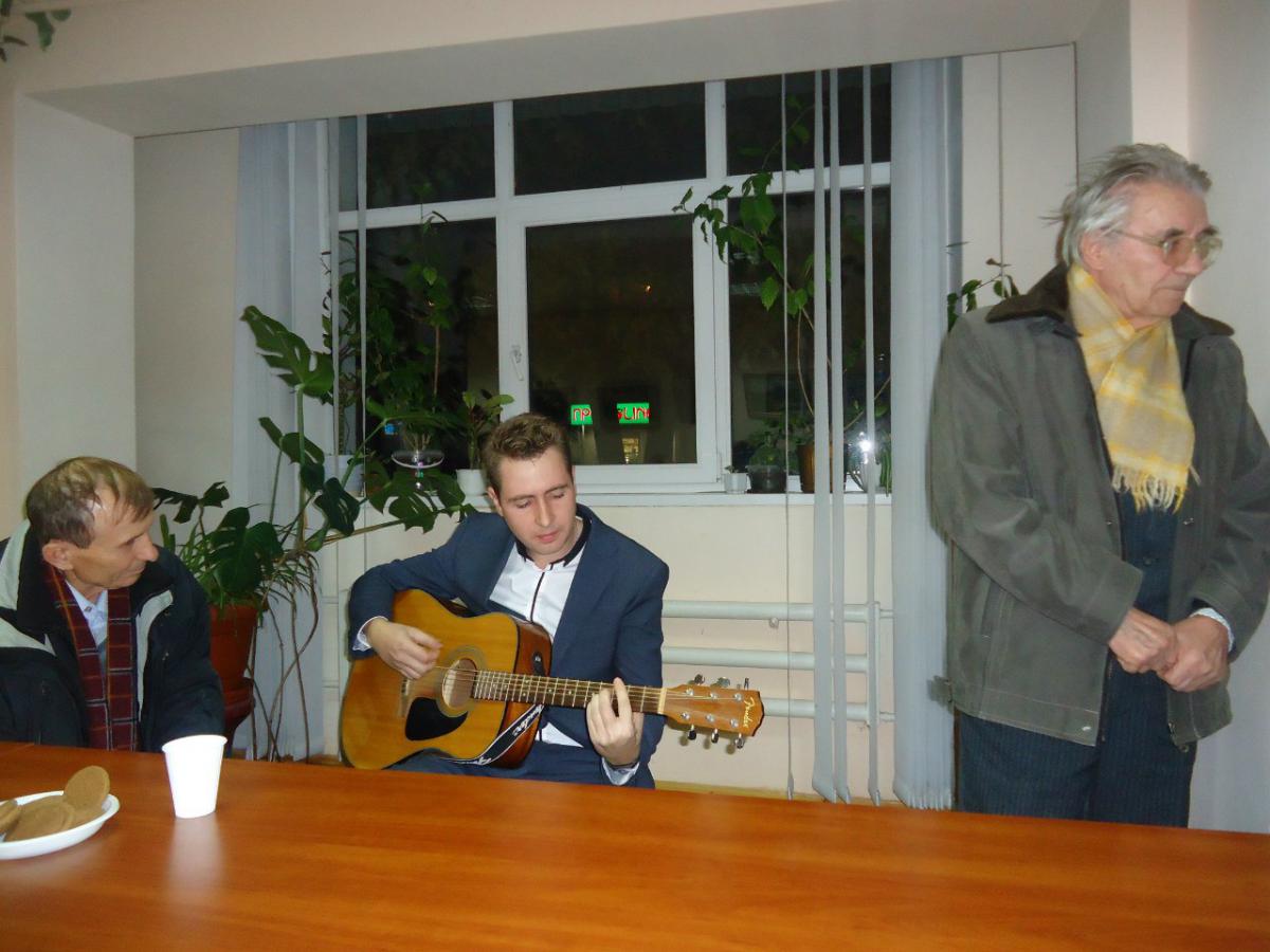 На презентацію пан Анатолій прийшов разом із сином Владом і дружиною Любов’ю, які цілком підтримують батька і підготували цікаву програму зустрічі. Всім присутнім син письменника подарував пісню Андрія Макаревича. Запрошуємо до міської бібліотеки, щоб прочитати прості за формою, але глибокі за змістом есе Анатолія Тіунова!