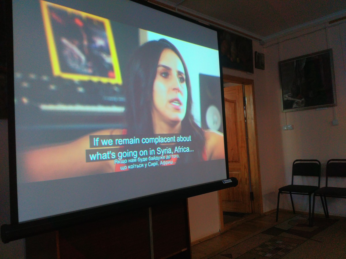 Дітям було запропоновано перегляд фільму «Боротьба Джамали», режисер Елін Йонссон Швеція / 2017, який прокоментував юрист, голова Правозахисного центру громадських досліджень Денис Денисенко, модератор показу кіно XIV Міжнародного Мандрівного фестивалю DOCUDAYS. Обговорюючи фільм він на прикладі співачки Джамали, яка є представником кримських татар, розглянув питання порушення прав людини на життя, свободу, на батьківщину.