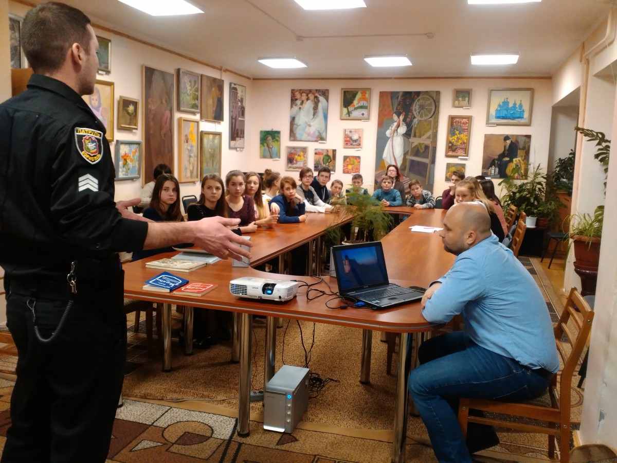 Офіцер поліції Іван Рудь наголосив на важливості знання кодексів України та прав підлітків. Він розкрив тему дотримання правил поведінки в суспільстві, громадських місцях, на дорозі. Присутні діти зацікавились професією поліцейського та звернулась до офіцера з певними питаннями.
