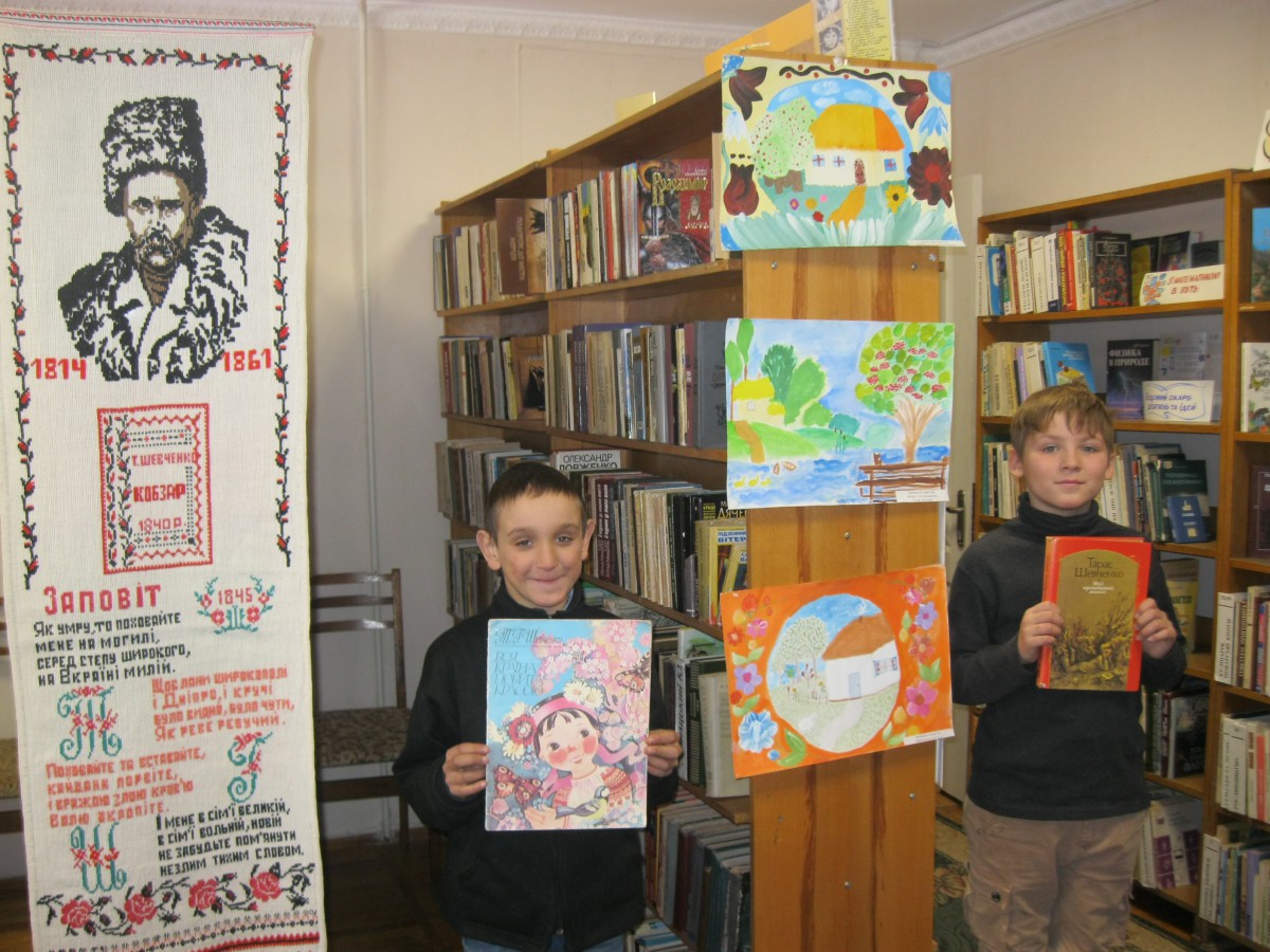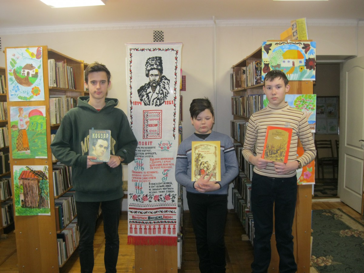 Читачі бібліотеки – Федорова Альона, Школа Женя, Середний Артем, Федорова Саша, Бігус Ксенія, Настенко Іра – із задоволенням читали вірші свого улюбленого поета.