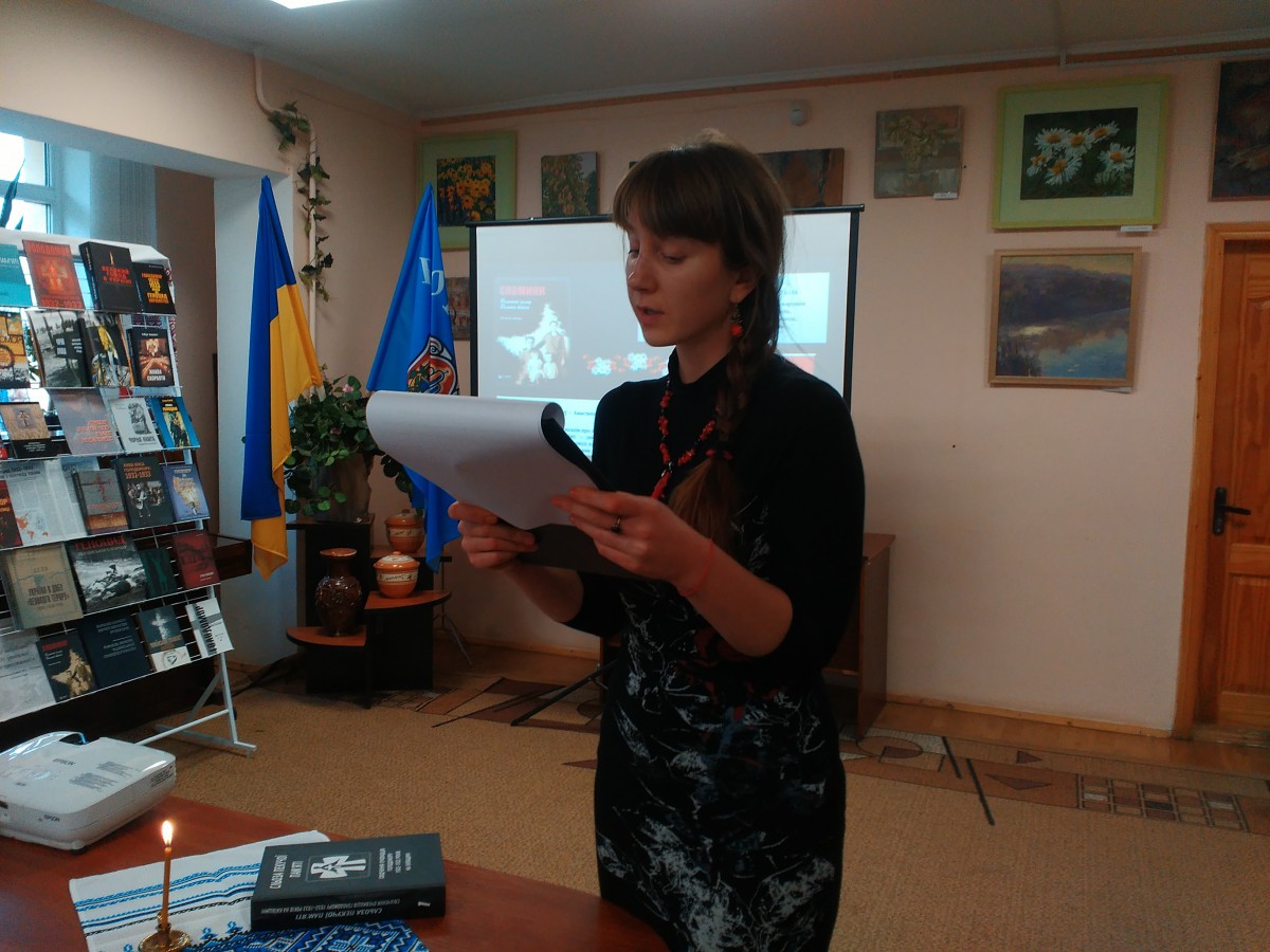 До уваги учасників заходу було продемонстровано озвучену відео презентацію «Пам’ять людська не забуде повік», до якої увійшов бібліографічний огляд літератури з фондів центральної міської бібліотеки (підготувала бібліограф Оксана Шевченко)
