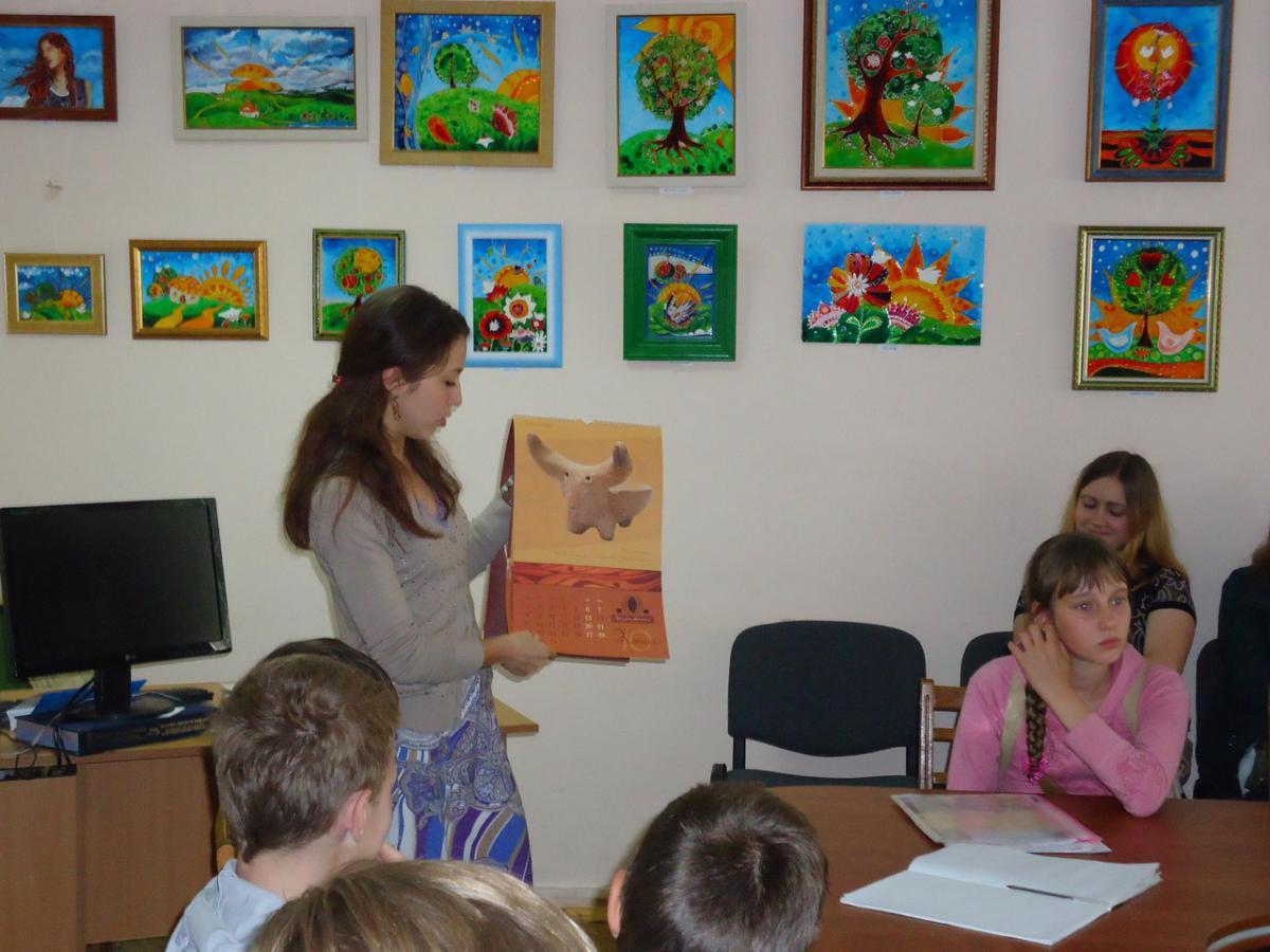 Виставка присвячена єдності всіх живих створінь на планеті. Діти переглянули відеофільм про багатий навколишній світ «Я люблю тебе, Земле». Вражені побаченим, учні висловили свою думку стосовно таких понять, як добро, любов, дружба, єднання, мир.