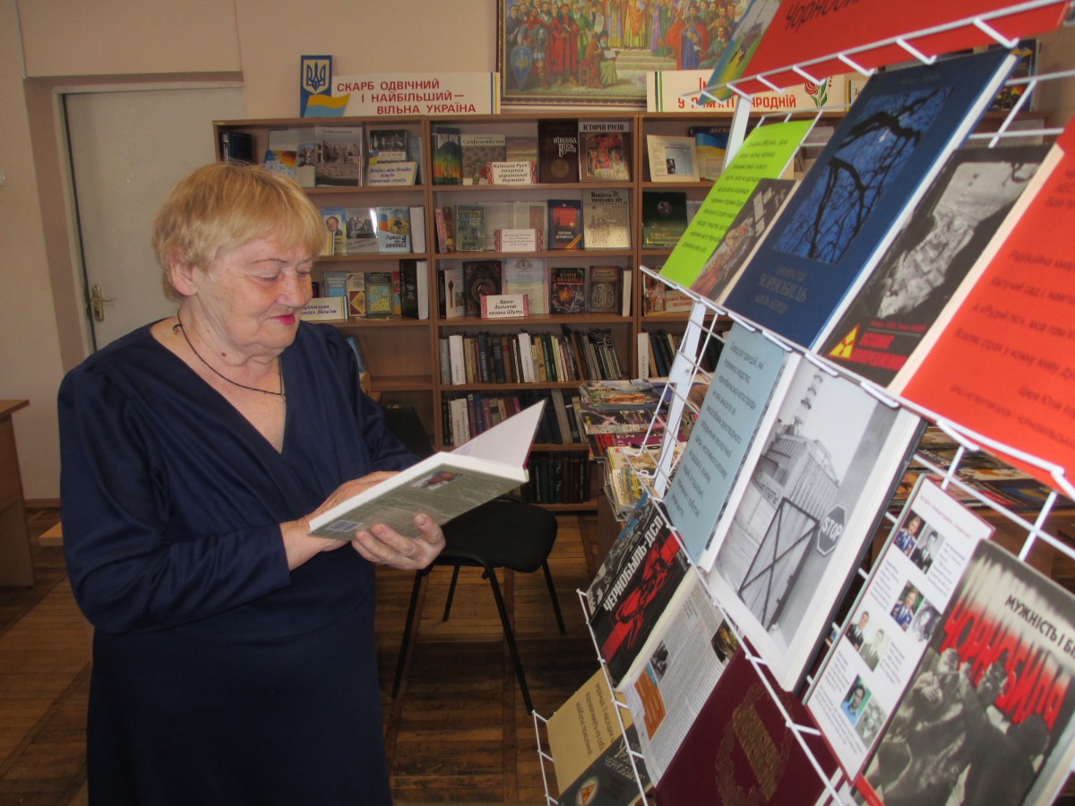 Величезну цікавість у відвідувачів читального залу викликала література з фондів бібліотеки, яка експоноується на книжковій виставці “Чорнобиль. Чорна пам’ять”.