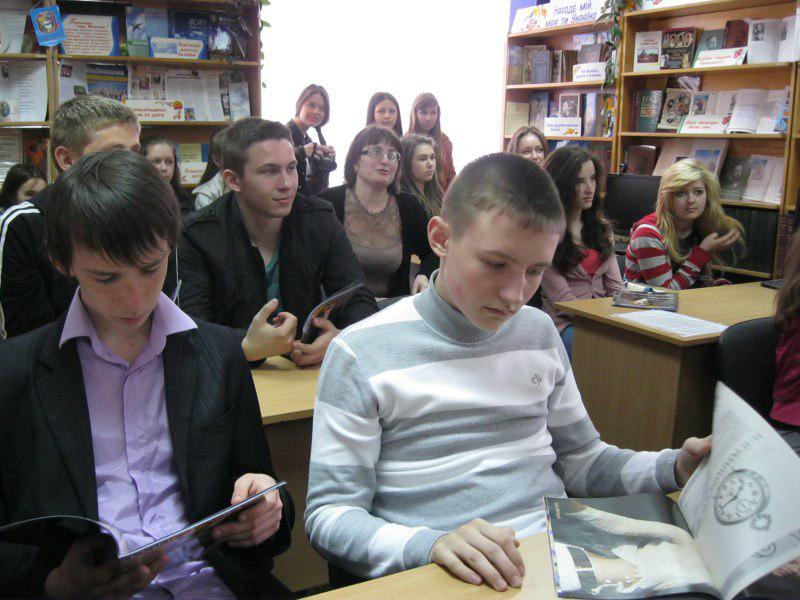 Доброю традицією для дитячої бібліотеки стали зустрічі з цікавими людьми. Цього разу до нас у гості завітали працівники редакційної колегії журналу "Однокласник": головний редактор Іванюк Сергій Семеновичем (літературний псевдонім Сергій Оксеник) та заступник головного редактора Марія Артеменко. Вони зустрілися з учнями 8-В та 9-Г класів школи №6 (кл.кер.Діяченко Г.П. та Захарова Н.М.).