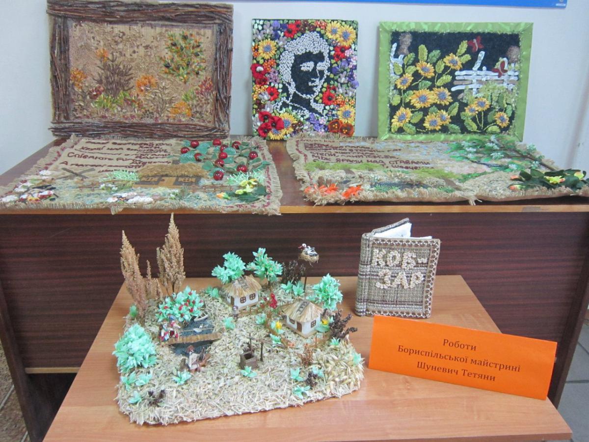 8 квітня в центральній міській бібліотеці відбулась перша персональна виставка робіт Бориспільської майстрині Тетяни Шуневич «Картини для Вашого інтер’єру». Майстриня працює в різних техніках використовуючи гілки, суху траву, тирсу, солому, папір, мішковину, стрічки, бісер та багато іншого. Тетяну прийшли привітати друзі, сусіди та не менш талановиті люди Борисполя. Присутні спілкуючись обмінювались досвідом, слухали поезії та насолоджувались музикою. Деякі охочі виявили бажання взяти майстер-клас у Тетяни, на що гостя з радістю згодилась навчити.