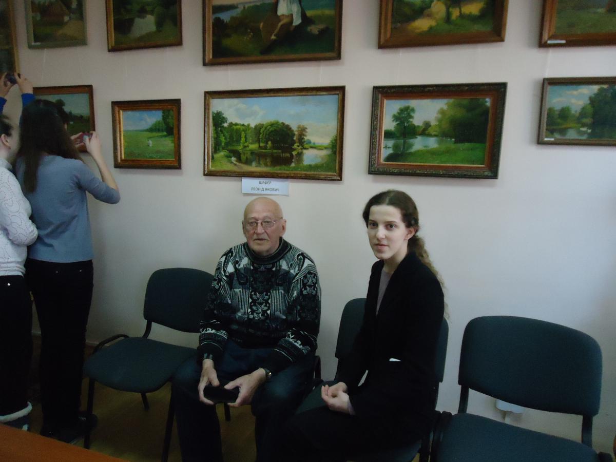 На зустріч з Леонідом Яковичем завітала юна художниця Вікторія Козленко. Наприкінці зустрічі майстер побажав присутнім відкривати в собі талант художника і виховувати важливі риси характеру - наполегливість та працьовитість. Леонід Шефер запросив усіх до себе в гості подивитись його картини, помалювати разом. На пам'ять про зустріч школярі сфотографувалися разом з Леонідом Яковичем Шефером.