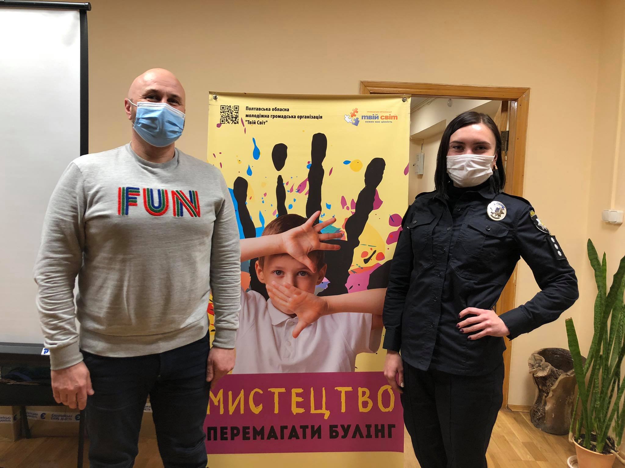 Згуртування громади в питаннях протидії булінгу До Всесвітнього дня дитини, 20 листопада 2020 року, в Бориспільській міській бібліотеці провели воркшоп «Кейс згуртування громади в питаннях протидії булінгу». Основним інструментом стала настільна кооперативна стратегія «Світ Громад» - гра у жанрі соціального симулятора, за допомогою якої організатори прагнули згуртувати громаду у сфері протидії булінгу. Організувала навчання для представників ювенальної превенції, шкільних психологів та бібліотечних працівників Полтавська обласна молодіжна ГО «Твій Світ» спільно з Бориспільською міською центральною бібліотекою. Воркшоп відбувся у межах проєкту «Мистецтво перемагати булінг: форум – театр для служб шкільних омбудсменів на протидію булінгу в навчальних закладах малих міст України» і реалізується за підтримки Фонду сприяння демократії Посольства США в Україні.