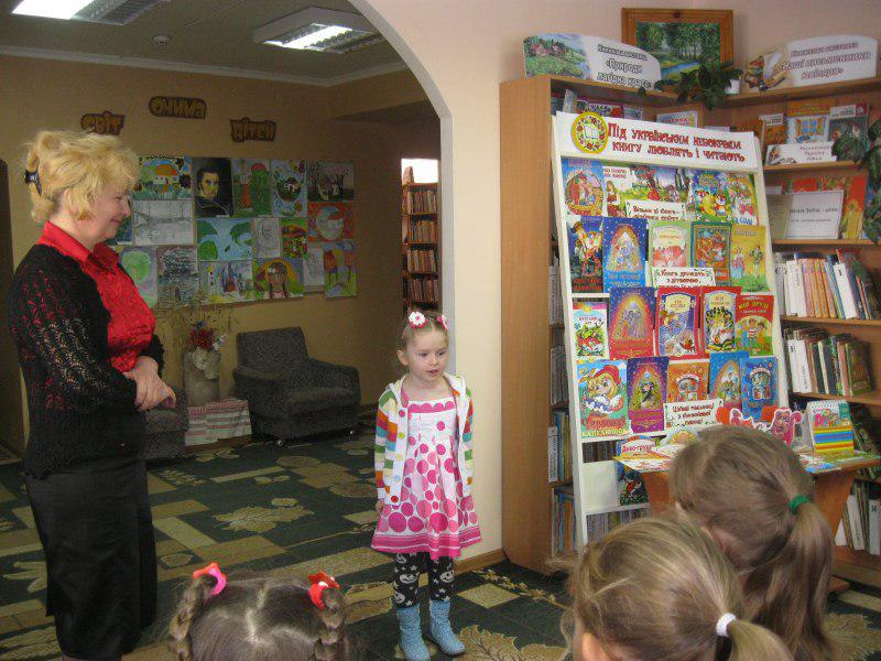 За гроші можна купити все, але не можна купити здоров’я і розум. Про здоров’я потрібно дбати змалку, а от розум може подарувати тільки книга. Книга – найцінніший скарб, одне з найкращих надбань людства. З такими словами звернулась до вихованців дитячого закладу «Веселка» провідний бібліотекар Руденко Т.Г. Цього разу в рамках проведення тижня дитячої книги в дитячій бібліотеці відбувся літературний ранок «Хай Україна вся читає, бо книга нас усіх єднає». З великим задоволенням діти читали вірші, відгадували загадки, співали пісні та здійснили веселу мандрівку стежками українських казок. Не обійшлося в цей день без поезії Т.Шевченка. В кімнаті казок діти прослухали українську народну казку «Хитрий півень» та дізналися, що книги можуть бути різної форми: книга – віконце, книга – котик, книга – грушка та багато інших.