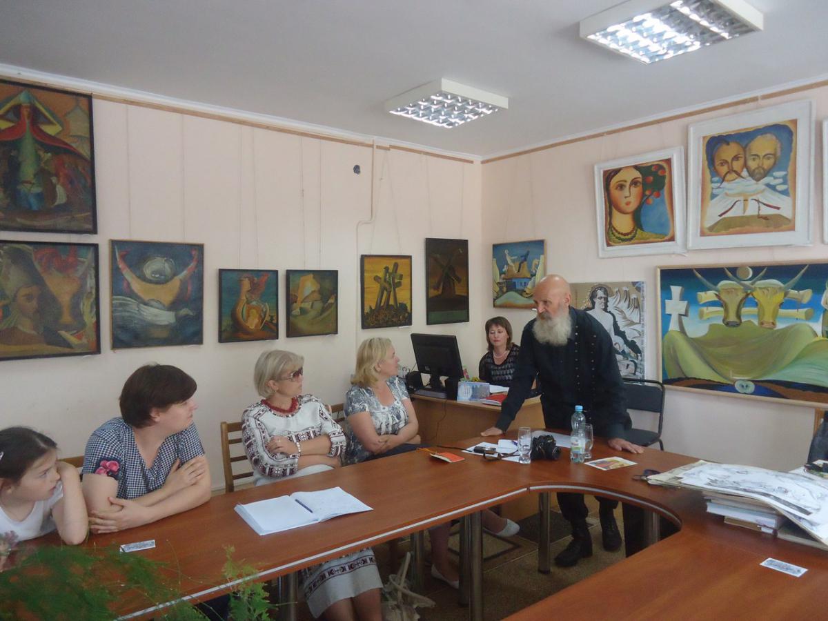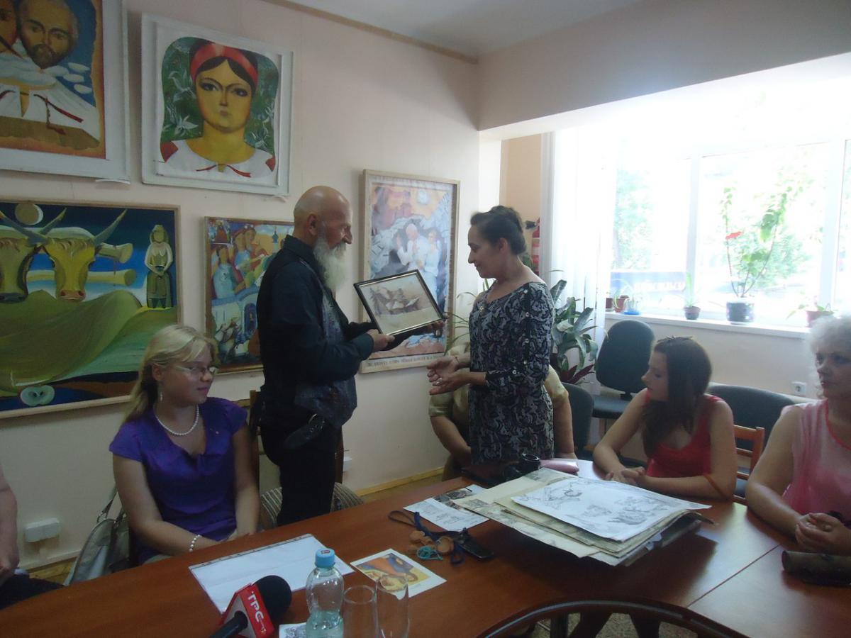 Гості були в захваті від спілкування з митцем, ставили багато запитань, подякували художнику за цікаву виставку. На знак поваги і на згадку Володимиру Кальненку подарували двотомник-альманах «Бориспільський край» і запросили його до Борисполя з новими виставками. У свою чергу мистець (як художник сам себе називає) залишив у подарунок відвідувачам бібліотеки власну роботу.