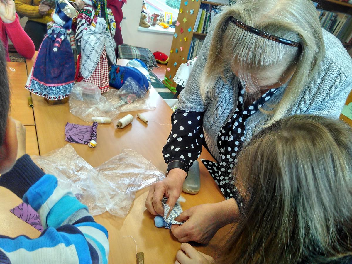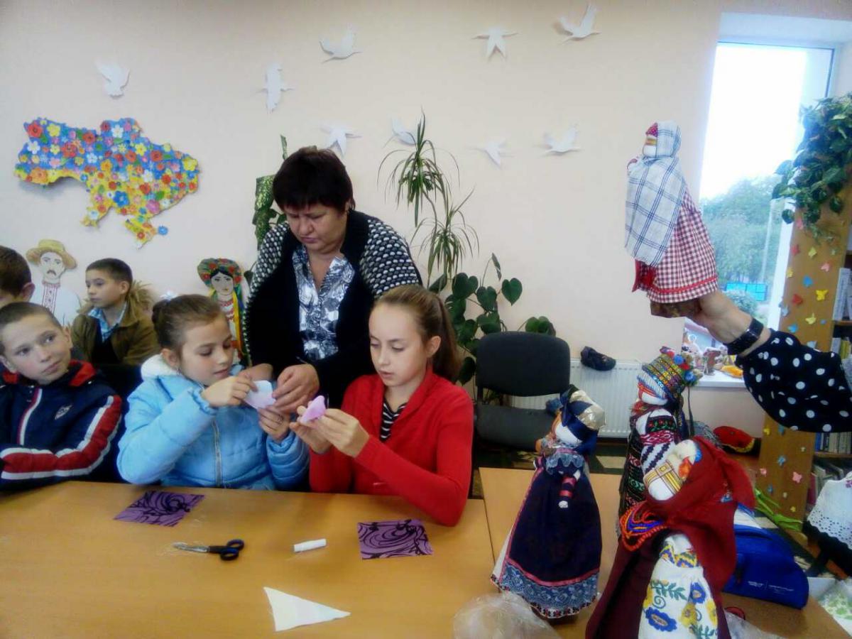 Олена Іванівна розповіла дітям про історію походження мотанки, яка є символом роду, родинного оберегу; розкрила секрети її виготовлення. Також був проведений майстер-клас з виготовлення ляльки-немовляти. Дітки з великим задоволенням, крок за кроком, наслідуючи майстриню, мотали кожен свій оберіг. У кожного вийшла своя, не схожа на інші, лялечка.