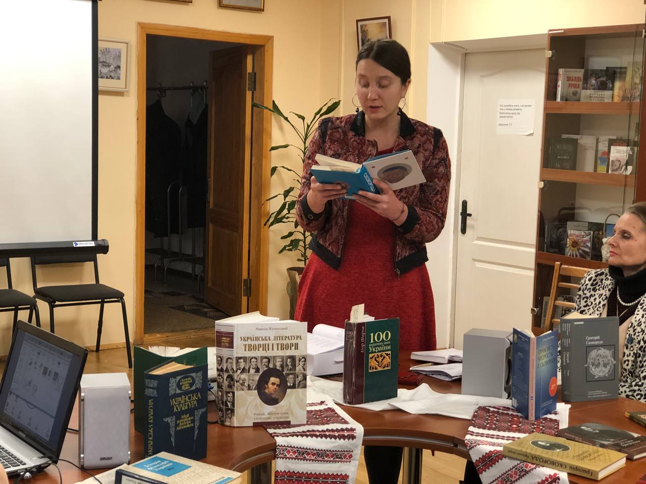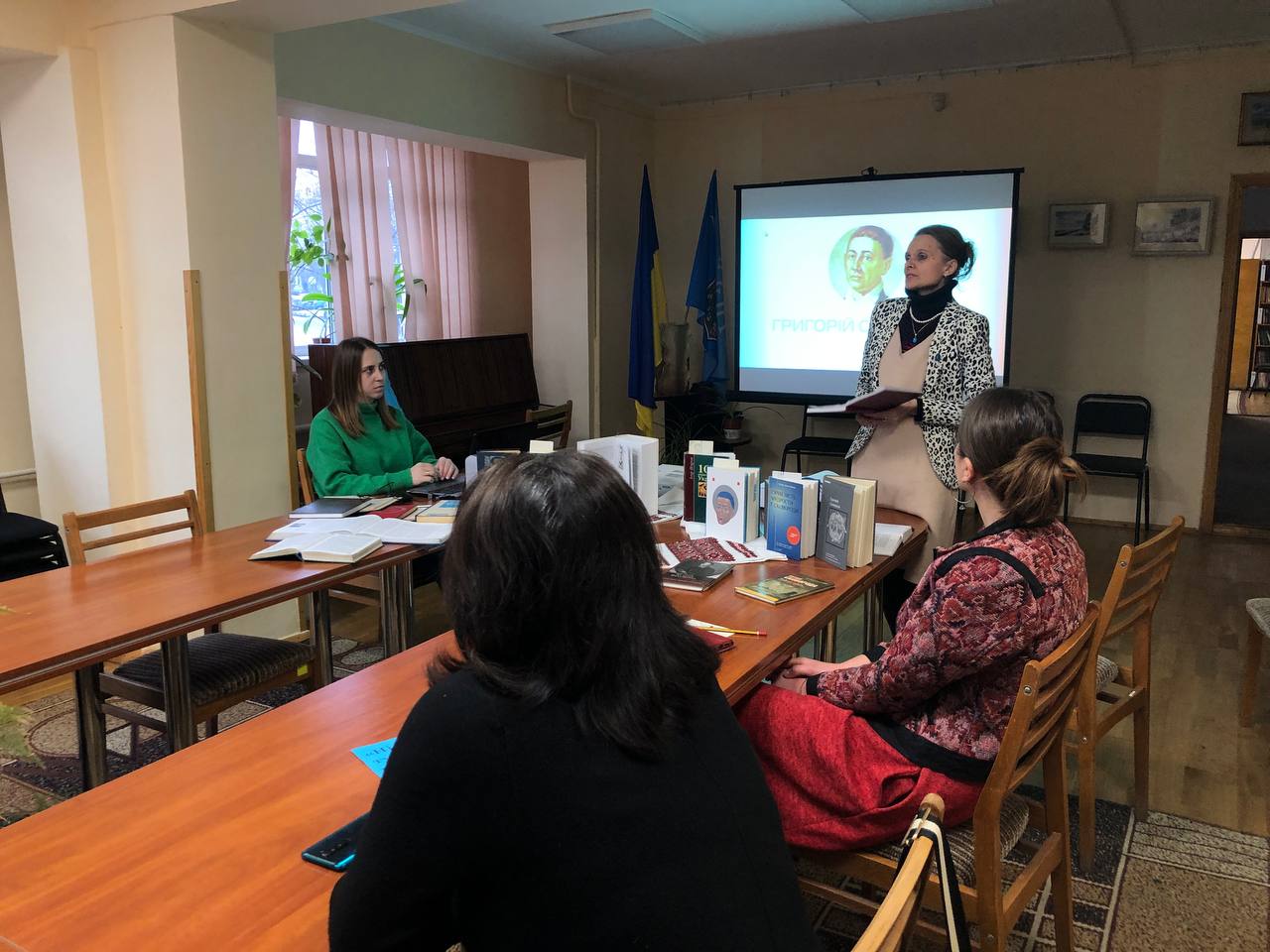 Директор бібліотеки Жанна Кручиніна презентувала книгу творів Григорія Сковороди під редакцією Леоніда Ушкалова з домашньої бібліотеки і поділилась власним осмисленням творчості філософа.