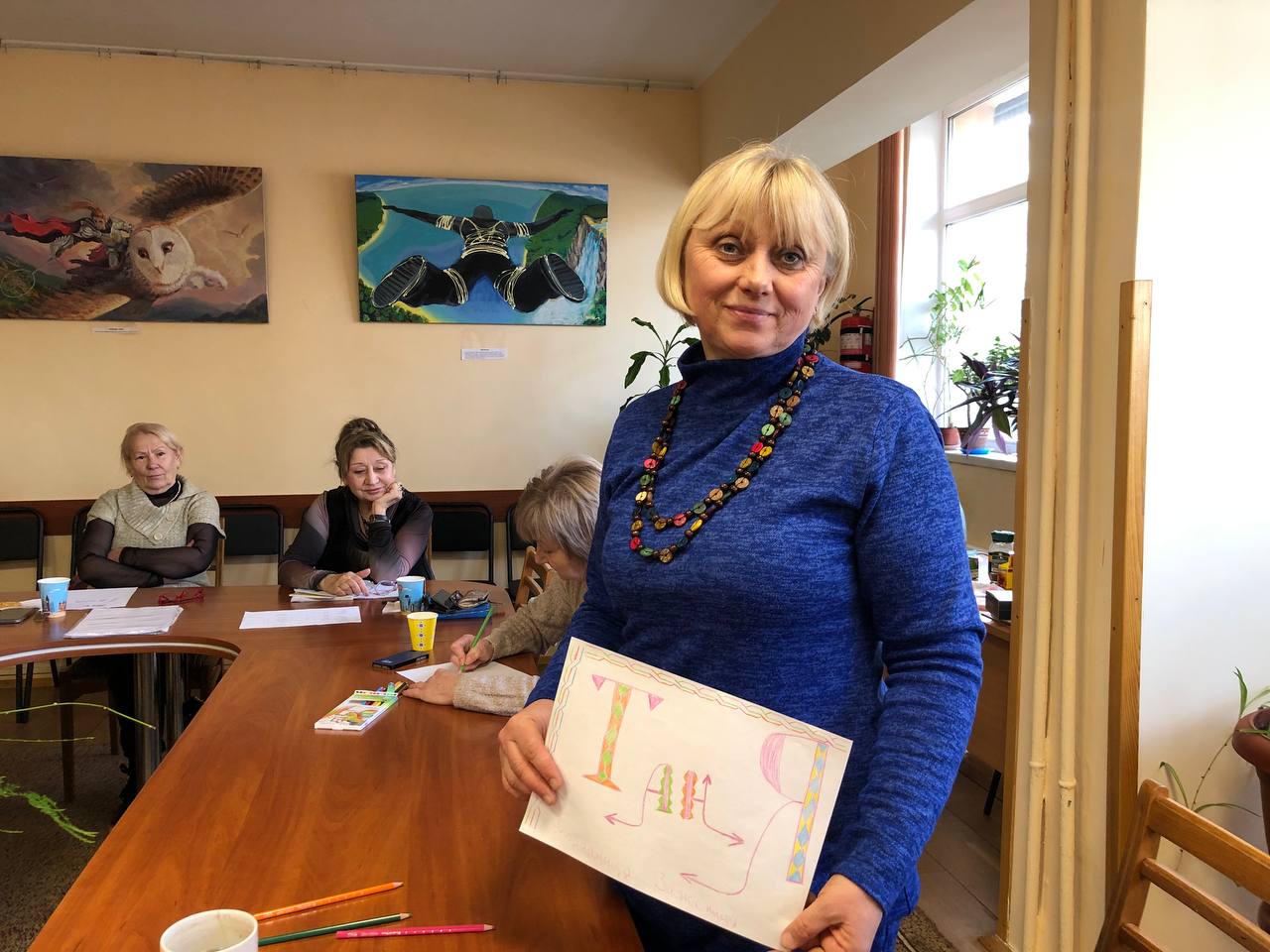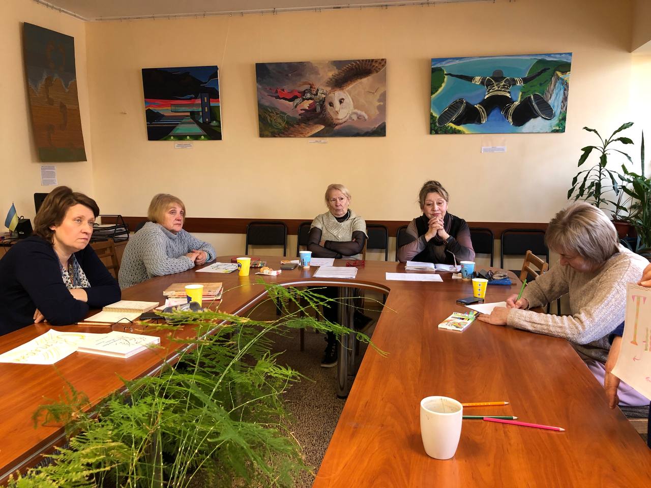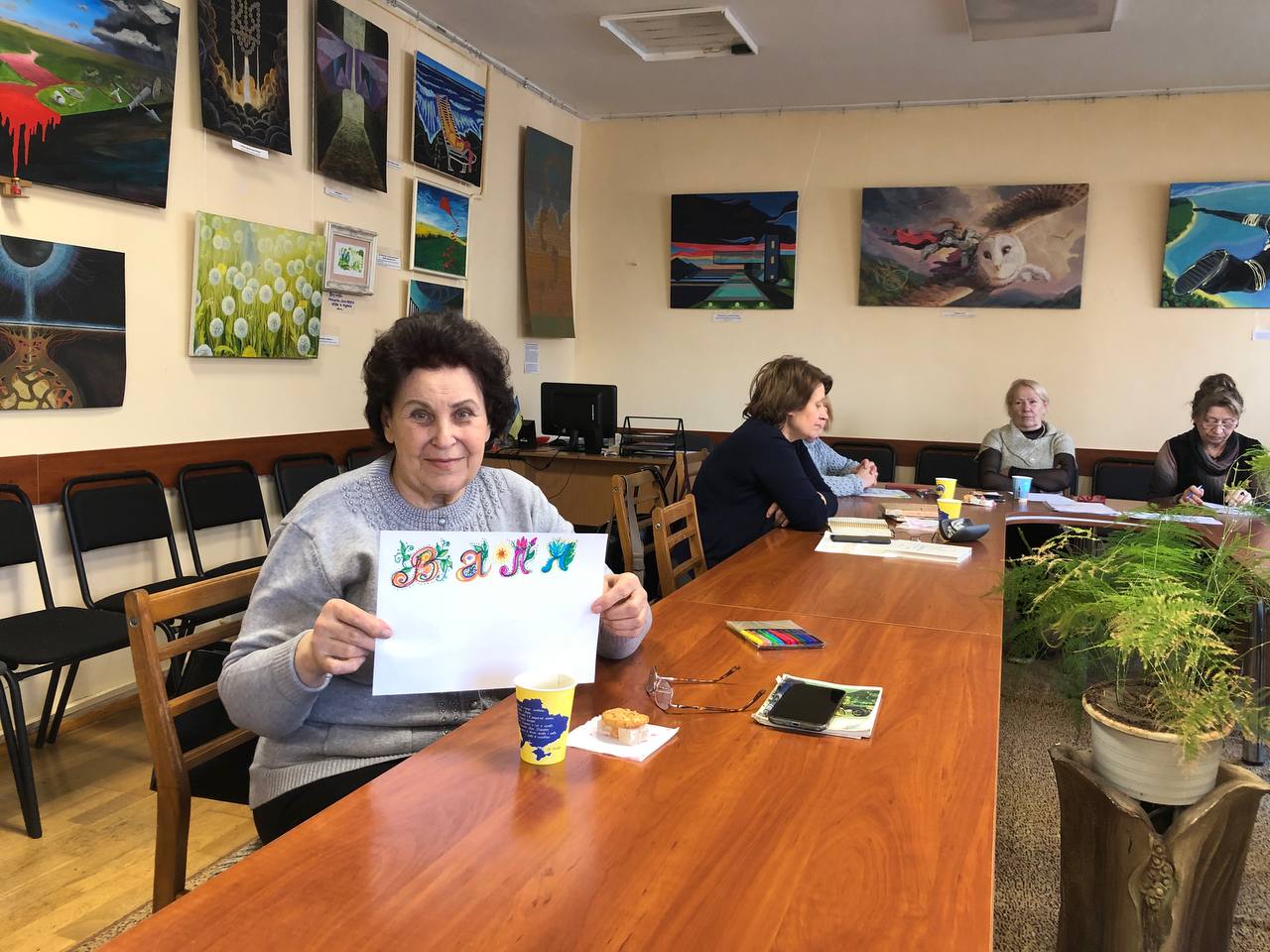 Бойко Світлана презентувала та подарувала бібліотеці книги, в яких йдеться про творчість сучасних живописців. Методист Майко Катерина провела арт терапевтичну вправу «Намалюй своє ім’я». Кожна з «берегинь» з великим задоволенням, фантазією і гарним настроєм створили своє маленьке диво.
