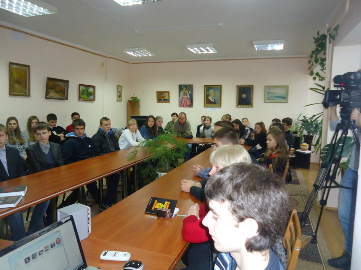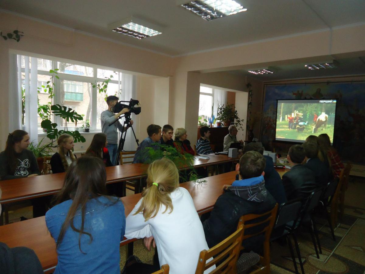 Нову книгу Володимира Сергієнка «Голодомор 1932-1933 років як геноцид українства» представила учням директор бібліотеки Жанна Кручиніна. Під час проведення заходу відбувся перегляд сучасного фільму « Голодомор. Люди правди», документальна кінострічка Бенедикт Бене "Голодомор. Забутий геноцид" та наступні відео: «Ніна Матвієнко про Голодомор», «Василь Шкляр про Голодомор», « Остап Гавриш. Голодомор».