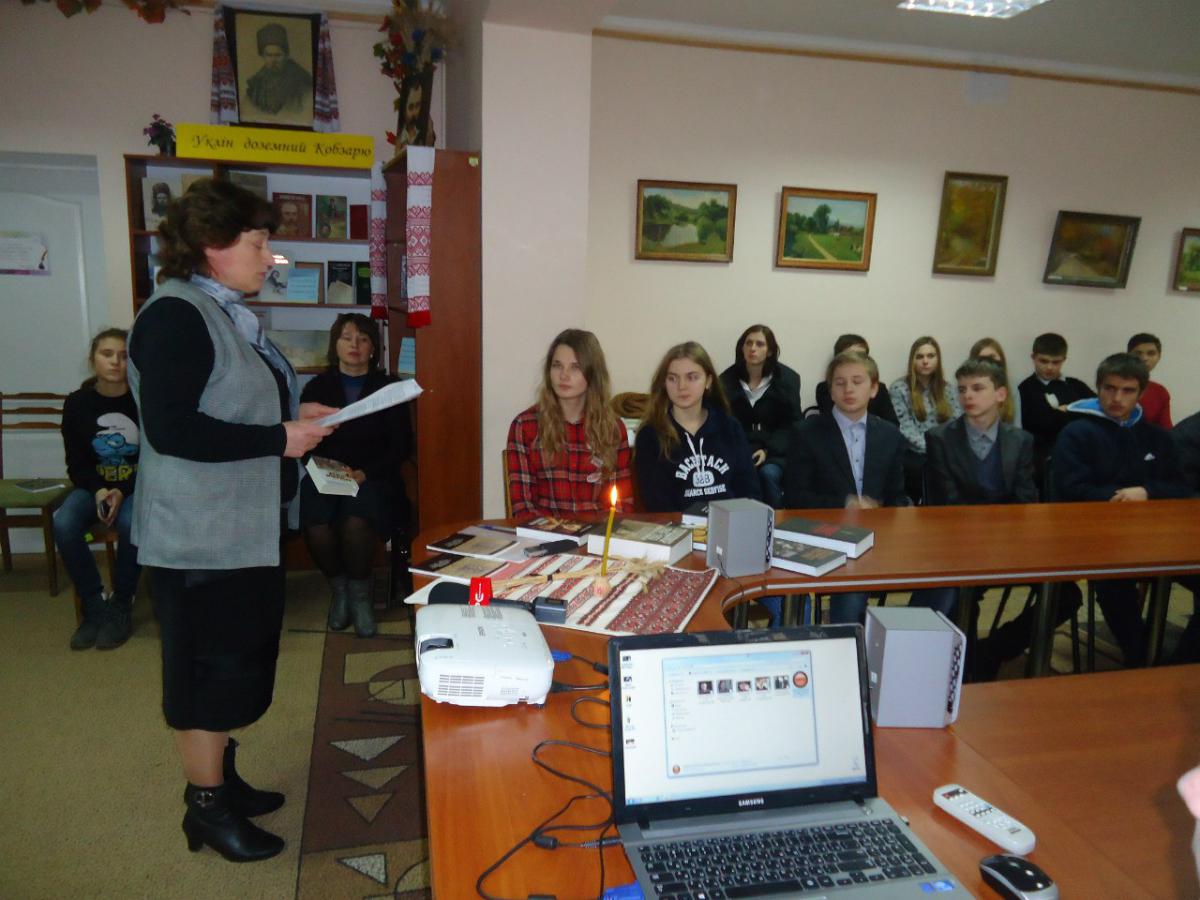 Присутні вшанували пам’ять жертв Голодомору хвилиною мовчання. Учні були ознайомлені з сайтом: Інституту національної пам’яті, де в Рубриці "Пам’ять про Голодомор” розміщені новітні матеріали про геноцид українства та свідчення Людей Правди.