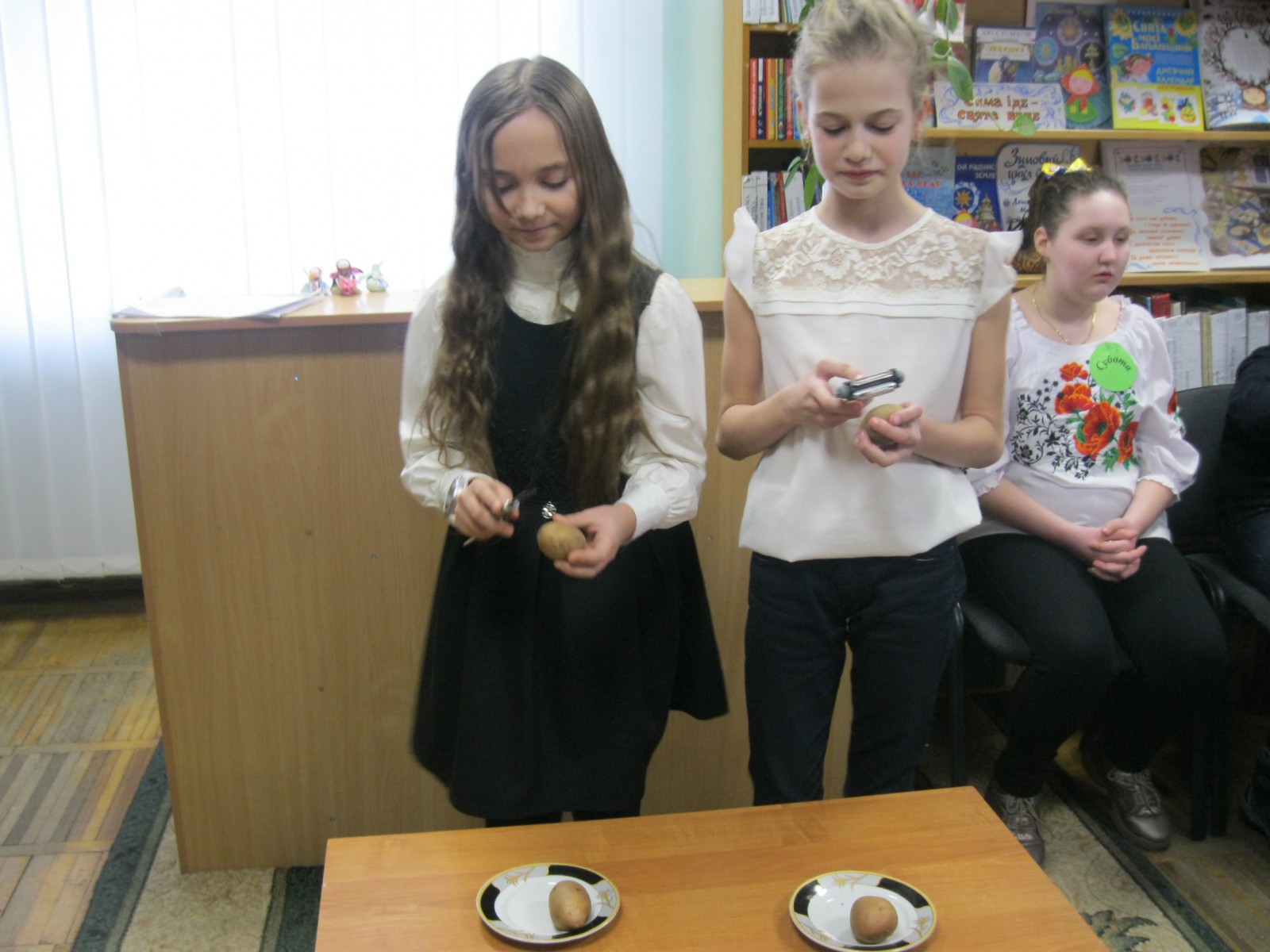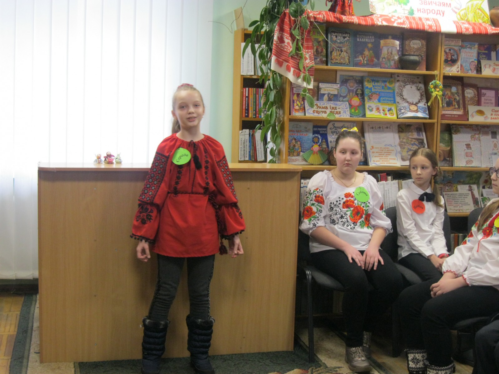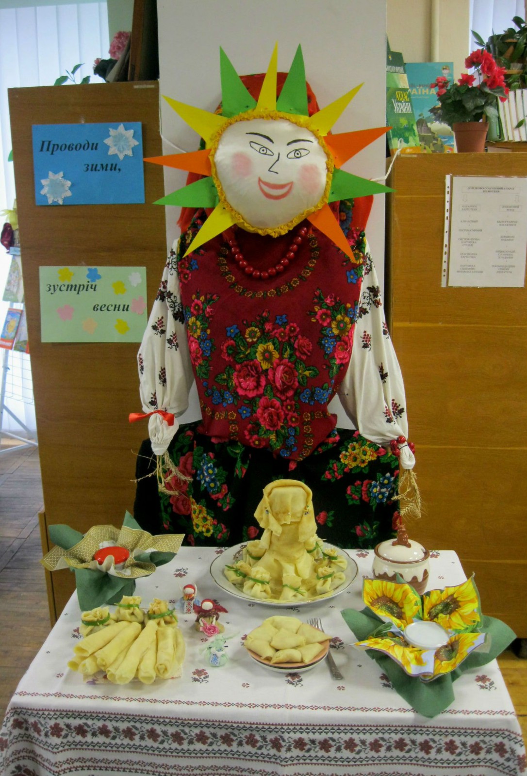 У святково прибраній світлиці було оформлено книжкову виставку «Масниця» та інсталяція з виробами з млинців. Радо зустріла дорогих гостей бібліотекарка Данчук Л.І. Вона розповіла дітям про історію виникнення свята, про обряди, які відбувалися під час святкування та атрибути та страви, що використовувалися під час Масного тижня.