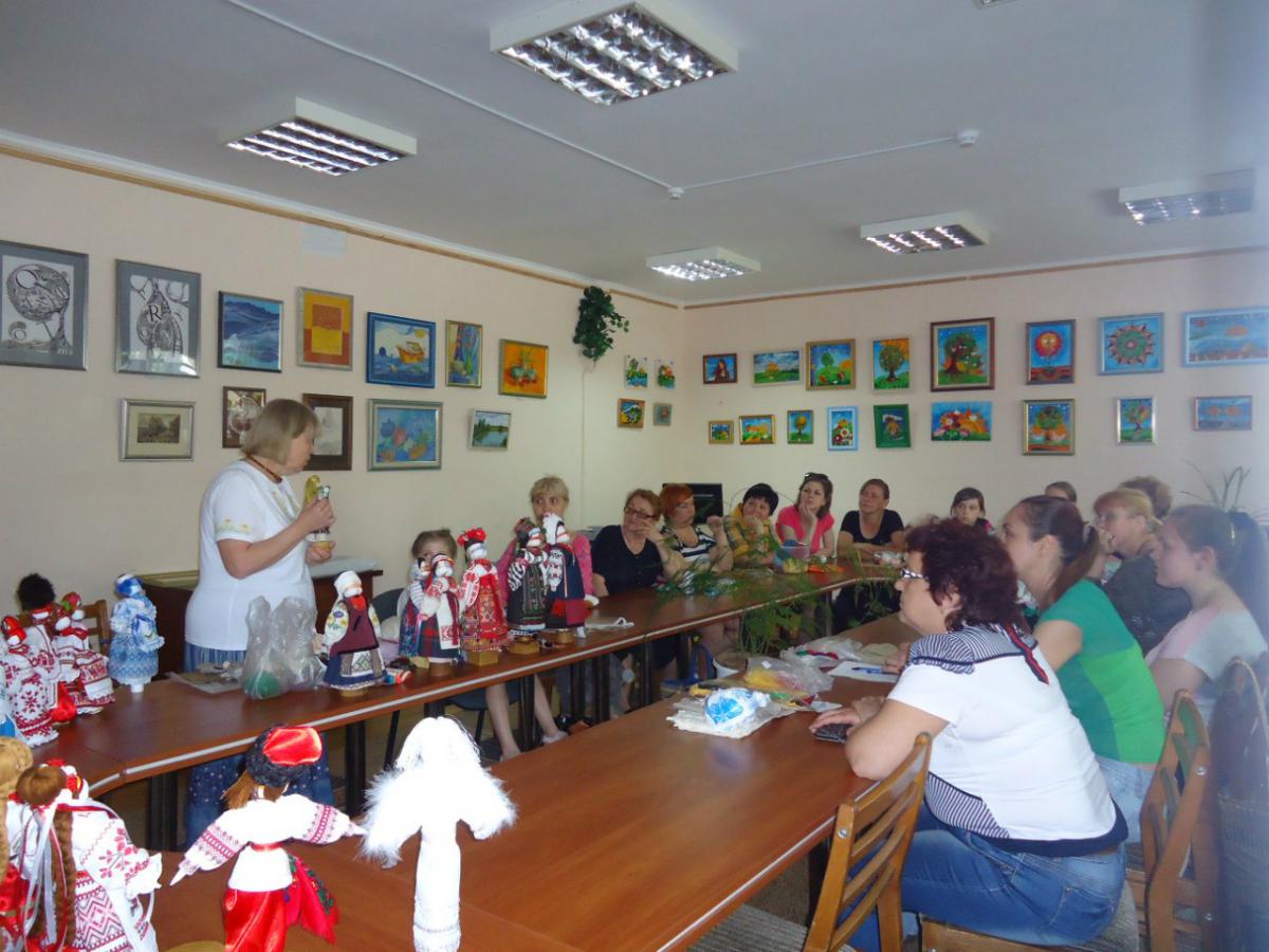 21 травня інформаційно-довідковий центр міської бібліотеки перетворився на творчу майстерню. Народна майстриня Олена Кравчун навчала бажаючих виготовлята ляльку мотанку Десятиручницю та маленьку ляльку Бажання.