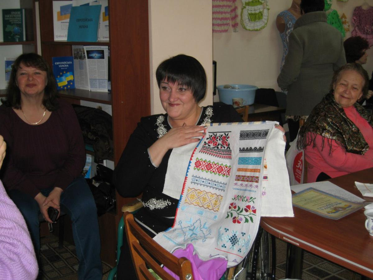 Так склалося, що Марина Петрівна втратила здатність ходити. Пересувається вона в візочку, але не підкорилась долі, не втратила надію на одужання. Її життя є прикладом того, що повноцінне життя на візку можливе. Вона перебудувала власний світогляд і усвідомила, що життя триває і часто робить речі, які не під силу здоровим і відкриває для себе всі барви життя. Марина Петрівна вишиває чудові картини і рушники на високому професійному рівні.