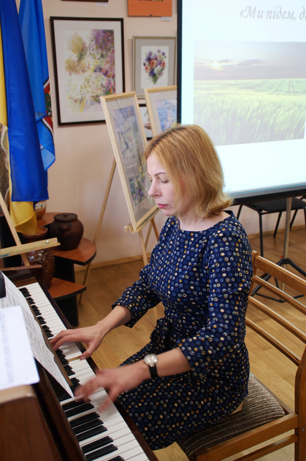 Прозвучала історія створення відомоі всім пісні «Два кольори», яку вже навіть вважають народною. На вечорі її душевно заспівав учень музичноі школи Генадій Юденко. Для тих, хто не зміг приєднатись до нашого музичного вечору, на сторінці бібліотеки у фейсбуці відбулась он-лайн трансляція.