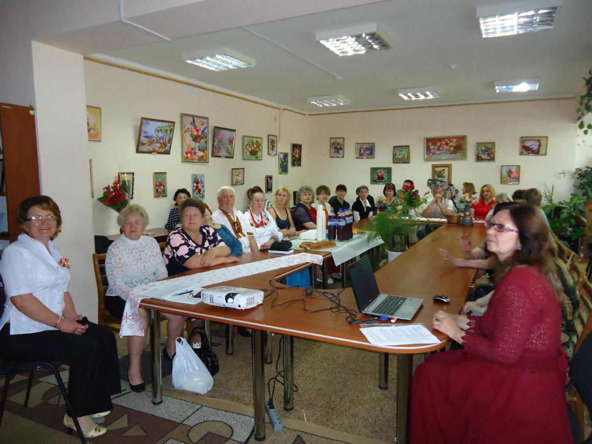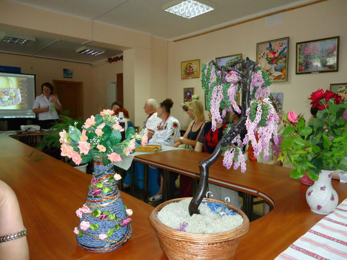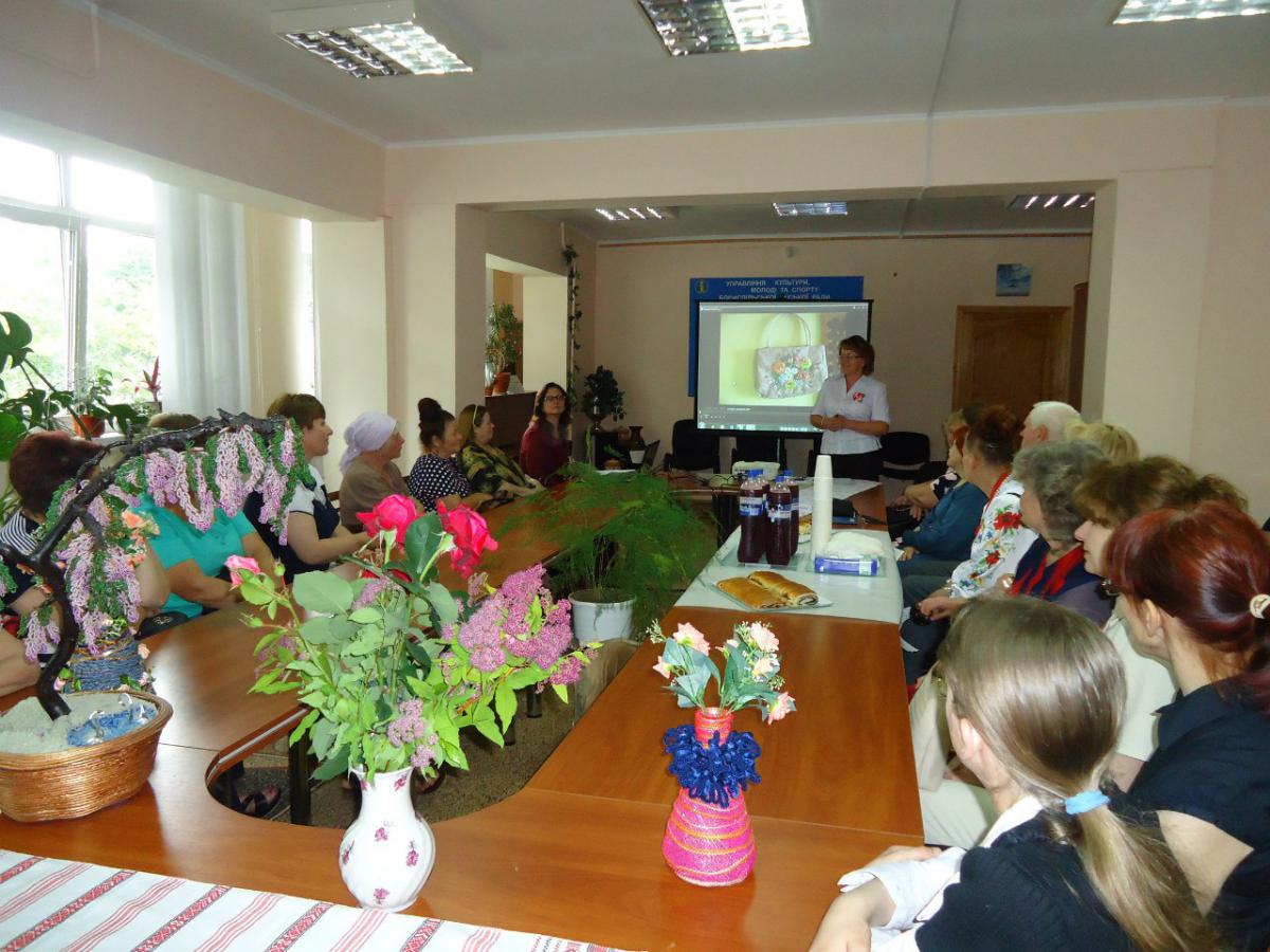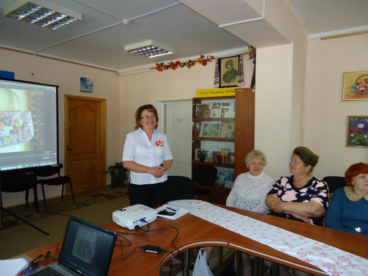 Під час заходу методист Олена Костюкова провела історичний екскурс країнами світу, де розвивався такий красивий і водночас практичний вид мистецтва як вишивка стрічками. Присутні мали змогу переглянути відео презентацію по темі, підготовлену працівниками бібліотеки.