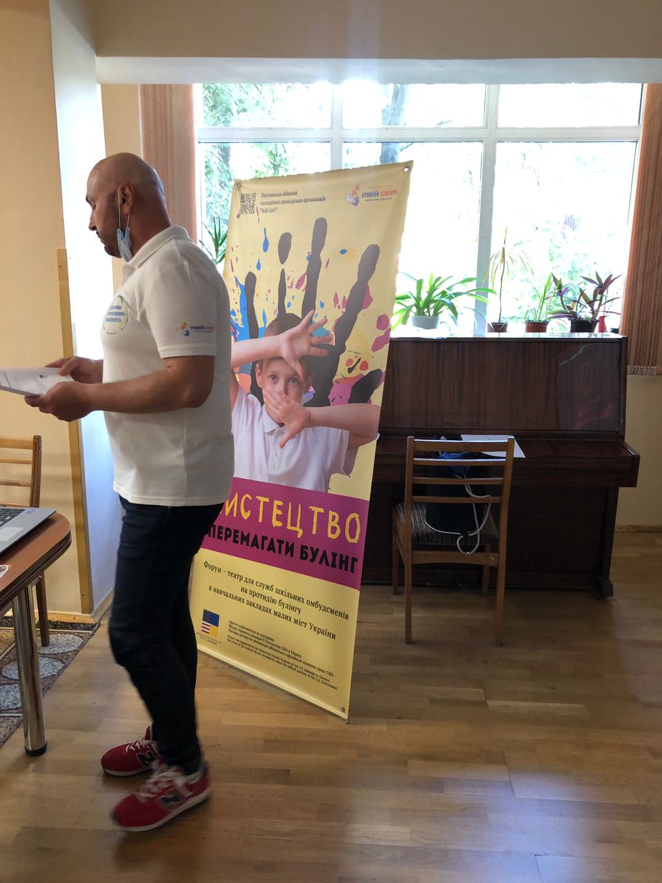 Модератор проєкту, голова Полтавської молодіжної ГО «Твій світ» Олександр Чепур ознайомив присутніх з заходами, передбаченими проєктом: протягом року фахівці та залучені тренери – експерти ГО «Твій світ» працюватимуть над впровадженням інтерактивної методики форум-театру в учнівських колективах загальноосвітніх закладів трьох міст України: Пирятин, Бориспіль та Ніжин.