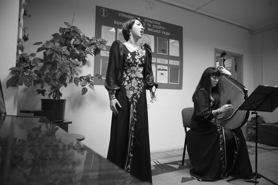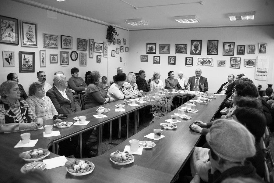 Доброю традицією стала співпраця бібліотеки з дитячою музичною школою, яку очолює Надія Ганудельова. Тож і цього разу окрасою і музичною ілюстрацією вечора були українські народні пісні у виконанні дуета викладачів Надії Завалій і Дани Григор’євої. Нікого не залишив байдужим виступ хору “Терниця”, художній керівник Анатолій Пономаренко. Артисти представили програму вшанування великого Кобзаря. Коли залою розлилась пісня “Реве та стогне Дніпр широкий”, всі присутні піднялись і заспівали. Саме в такі хвилини стає зрозумілим геній Шевченка - і сьогодні, через століття, його слово здатне об’єднати людей. Духовні скарби народу передаються не лише словом та піснею, а й руками умільців. Під впливом переглянутих у бібліотеці виставок майстрині Галина Бондар, Юлія Конопольська, Наталія Вєтрова та Юлія Колос відважились на сміливий крок - продемонструвати свою творчість широкому загалові. До свята у залі розгорнуто виставку їх вишивки . Жінкам притаманне прагнення творити красу і дарувати тепло своїх сердець людям. Учасники клубу спілкувались за чашкою чаю, солодощами пригостила депутат міської ради від Партії регіонів Тетяна Ільєнко.