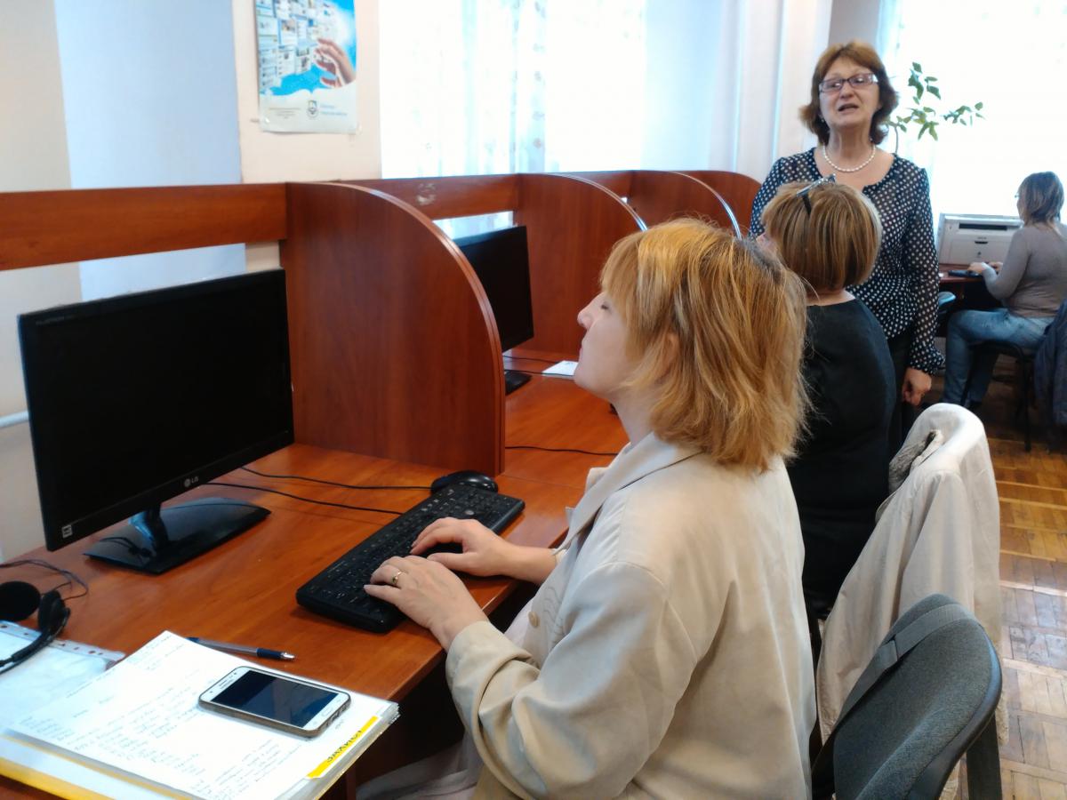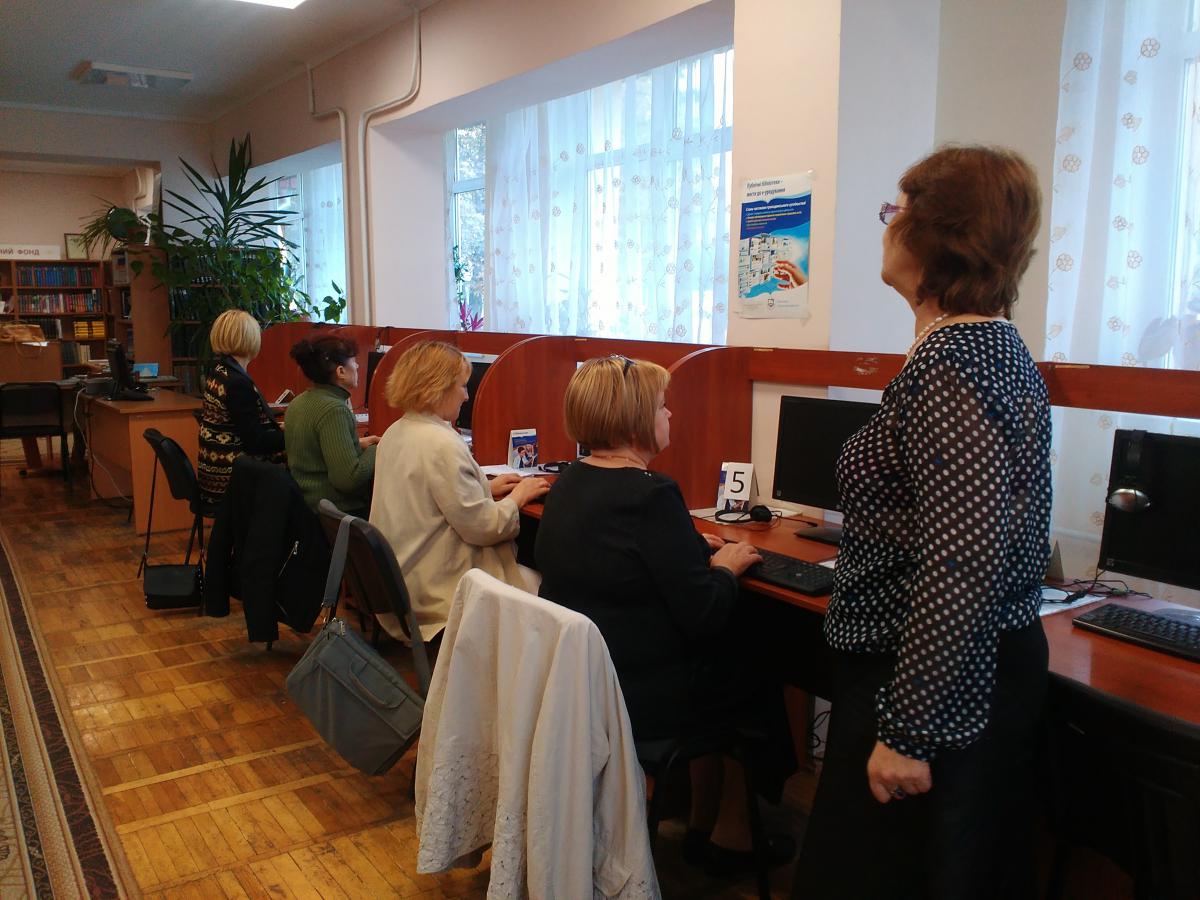 25 вересня 2017 в центральній бібліотеці відбулось чергове заняття Бюро комп’ютерих технологій. Слухачі комп’ютерного курсу – вимушено переміщені особи зі Сходу та Криму, майже наблизились до закінчення курсу швидкісного набору на клавіатурі ПК. Вони друкували вправи, використовуючи клавіши трьох літерних рядів клавіатури ПК: другого (основного), третього (верхнього) та першого (нижнього). Наприкінці заняття відвідувачі набрали вірш японського автора Ісікава Такубоку під диктовку методиста Олени Костюкової десятьма пальцями наосліп, не дивлячись ні на клавіатуру, ні на монітор. Користувачі закріпили знання команд для початківців в роботі з програмами «Комп’ютер» та Word.