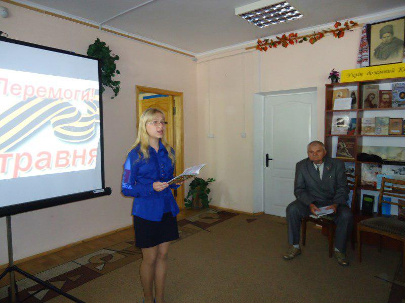 7 травня 2014 року, напередодні святкування дня Перемоги в Великій Вітчизняній війні в центральній міській бібліотеці проведено урок – реквієм «Перемога, свята Перемога! Свято миру, свободи, весни!». На захід були запрошені учні 8-х класів ЗОШ №1 (вчит. Величко Світлана Володимирівна). Пам'ять… вона нетлінна і вічна. Вона дивиться на нас із старих фронтових фотографій, з тих речей, які зберігають колишні фронтовики, і не дає померкнути жодній героїчній сторінці історії Перемоги над фашизмом.