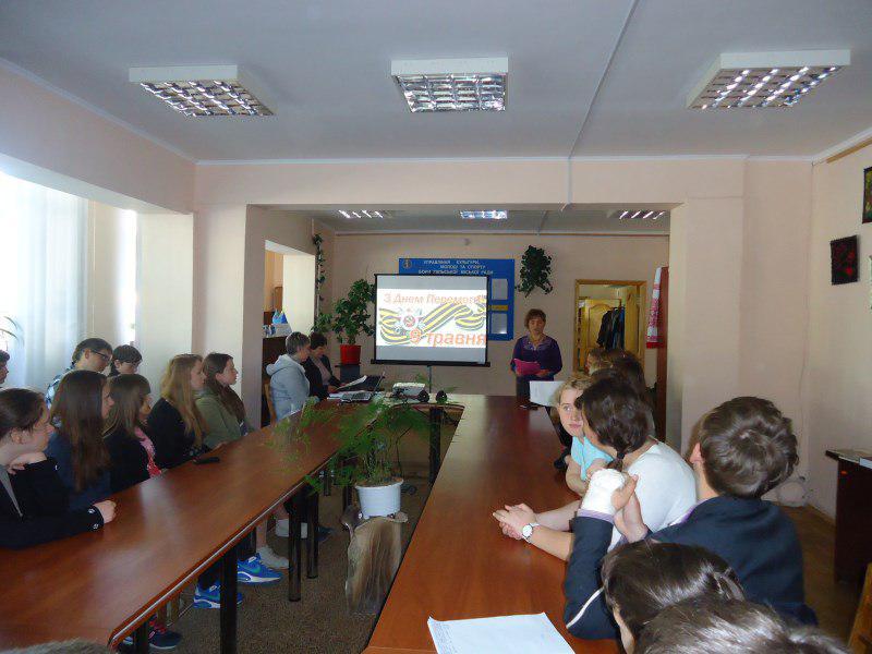 До уваги учнів був запропонований бібліографічний огляд літератури «Ніхто не забутий, ніщо не забуте», оформлена книжкова виставка «Безсмертна велич Перемоги!».
