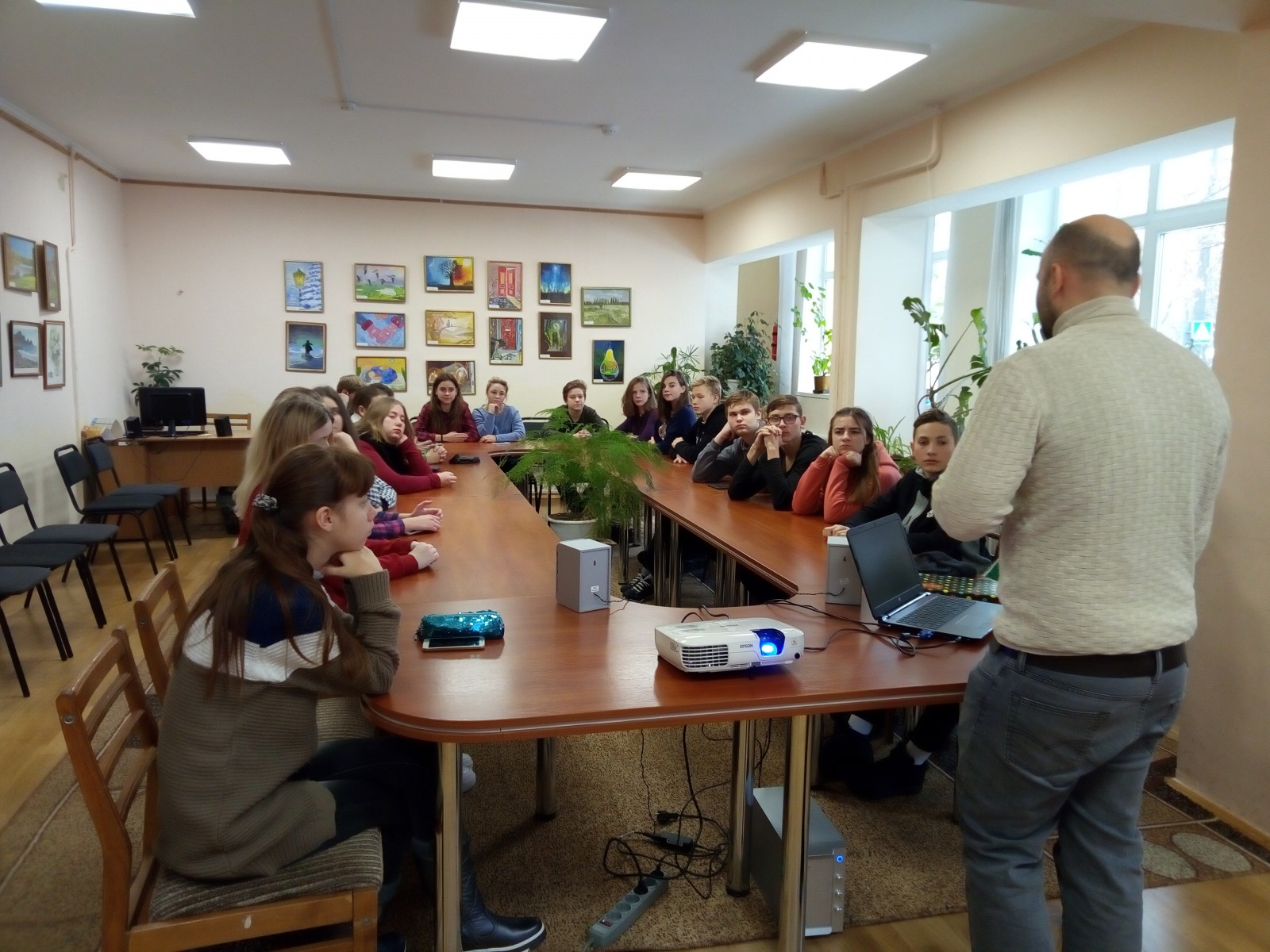 Школярі на одному подиху переглянули 2 короткометражні стрічки 15-го Міжнародного Мандрівного документального кіно про права людини Docudays UA. Соціальна анімація «Коли я чую спів птахів» повідала про жорстокі реалії війни в Африці через свідчення дітей про вимушені переселення, вбивства родичів, бажання їх змінювати цей світ і робити щось добре.