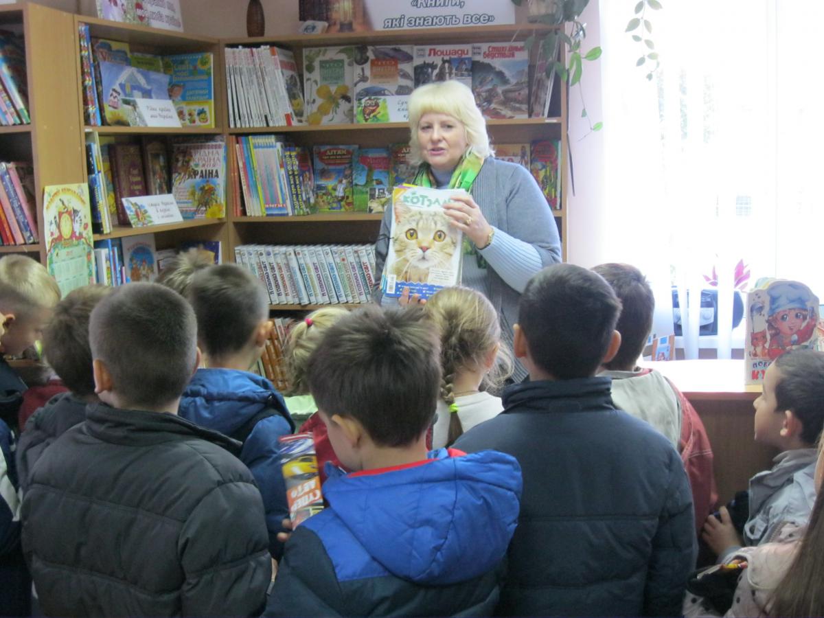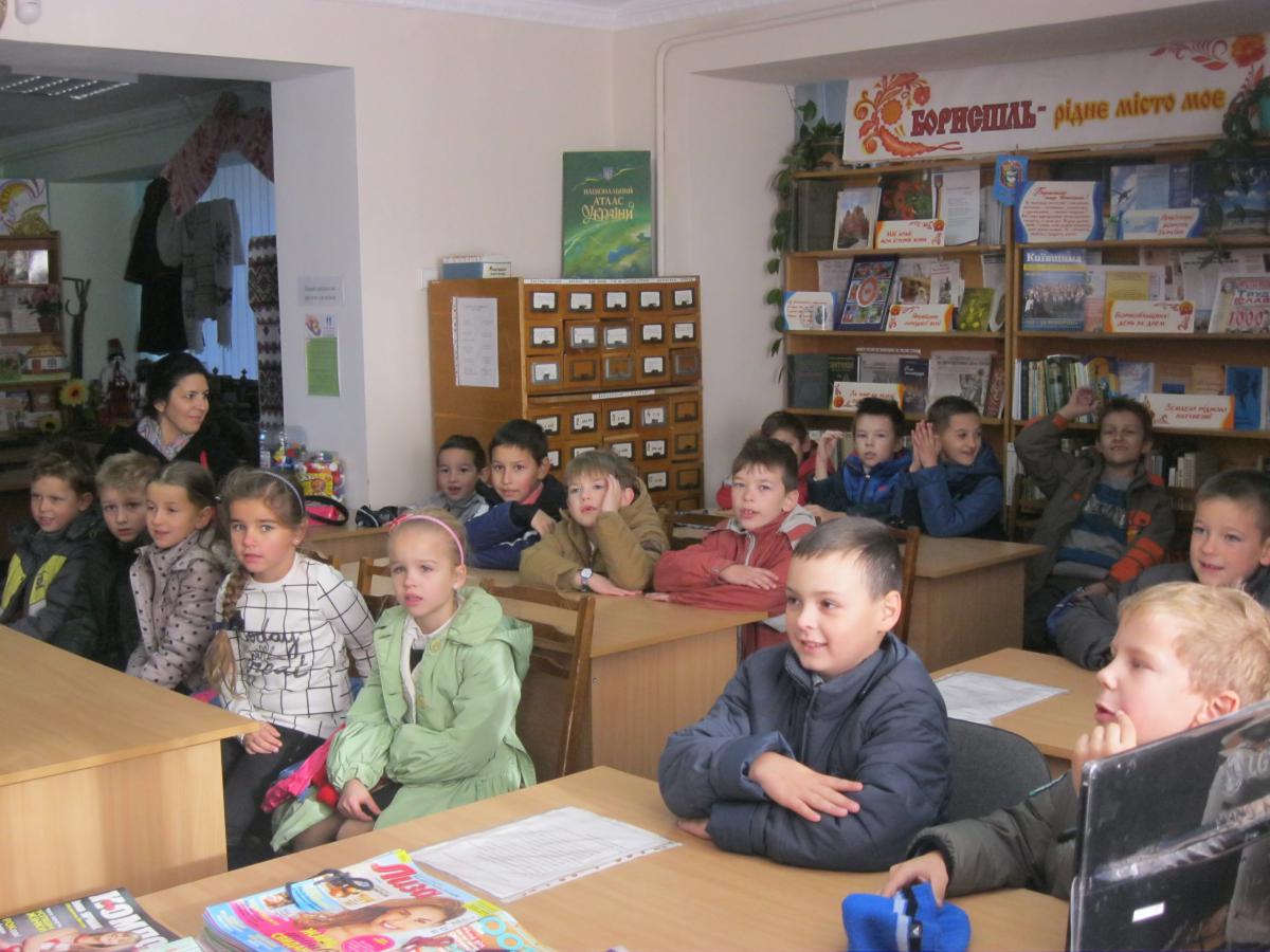 І цього ж дня в бібліотеці відбувся бібліотечний урок «Мандруємо бібліотечною країною», в якому взяли участь читачі-учні 2-а класу ЗОШ №5. Діти не тільки познайомилися з структурою бібліотеки, а також з періодичними виданнями, які пропонує дитяча бібліотека та етнографічним куточком «Шануємо традиції».