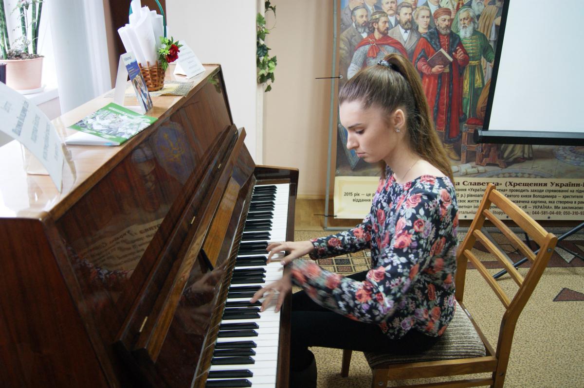 Зачарувала віртуозною грою на піаніно неодноразова учасниця бібліотечних заходів, читачка, студентка Вікторія Руденко. У її виконанні прозвучали класичні твори.