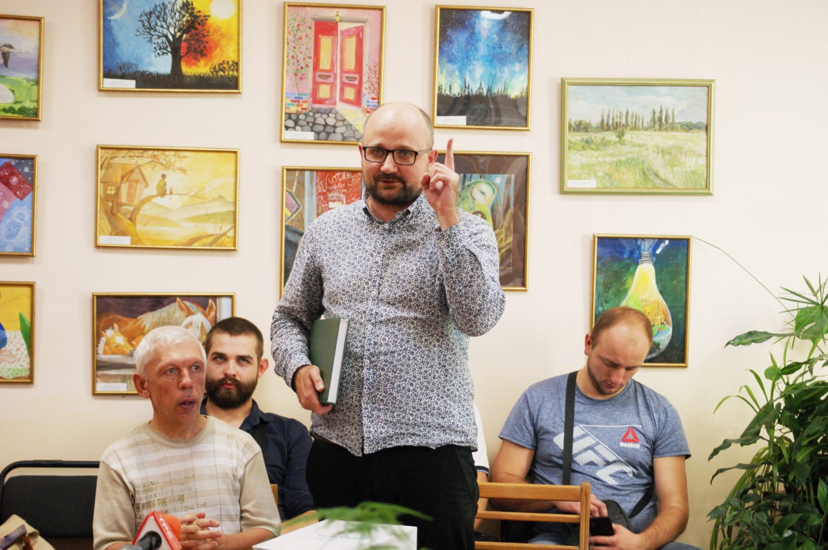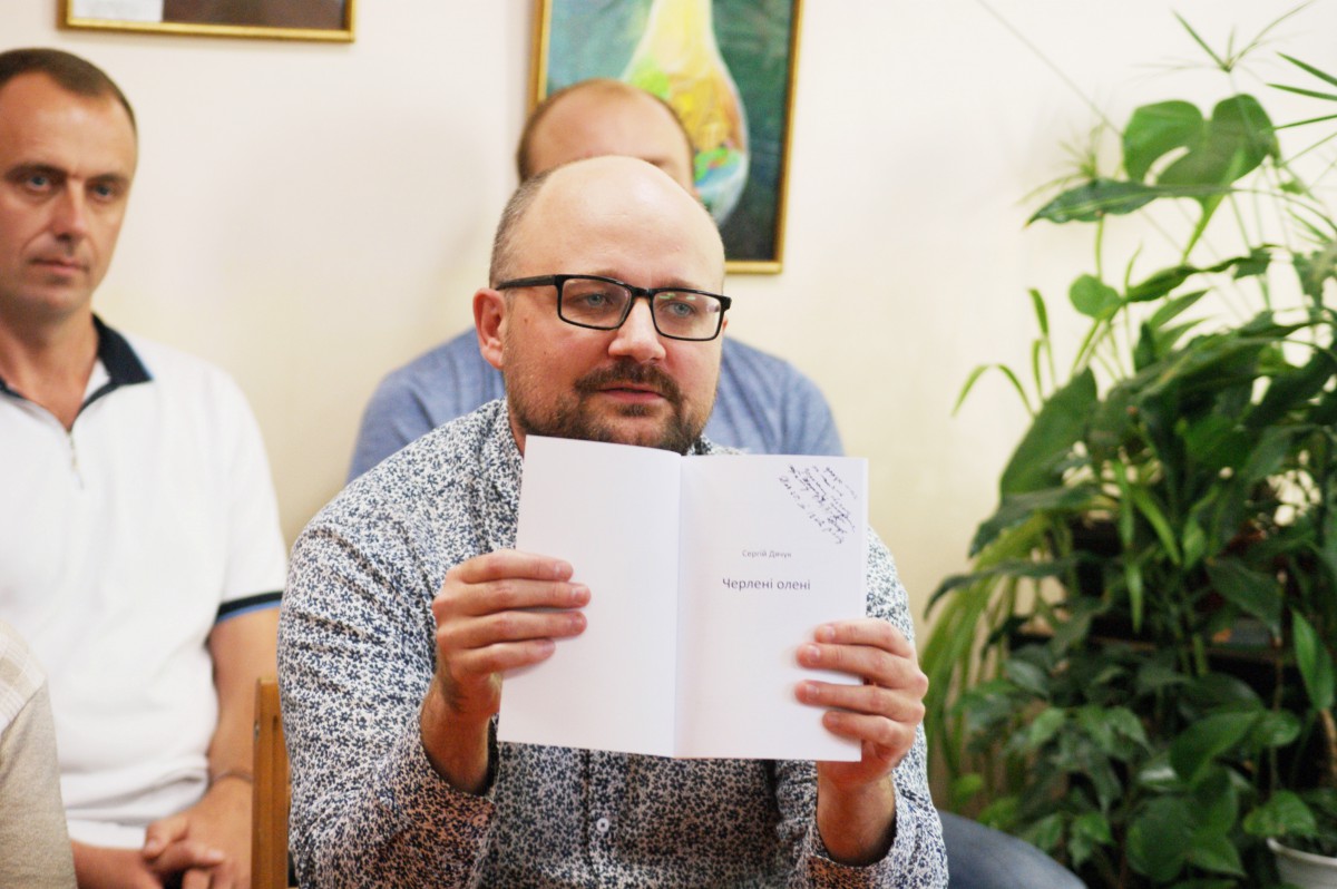 Сергій розповів як книга готувалася до друку, як відбирались автобіографічні фотографії, про символи – оленів та ніж, які є на обкладинці книги і є значимими для нього, зачитав уривки з книги, подякував усім за допомогу. Проте найцікавішою стала історія про те, як він одного дня у 10 –річному віці збагнув і і відчув свою українську і гуцульську ідентичність, живучи у напів- російськомовному Борисполі.