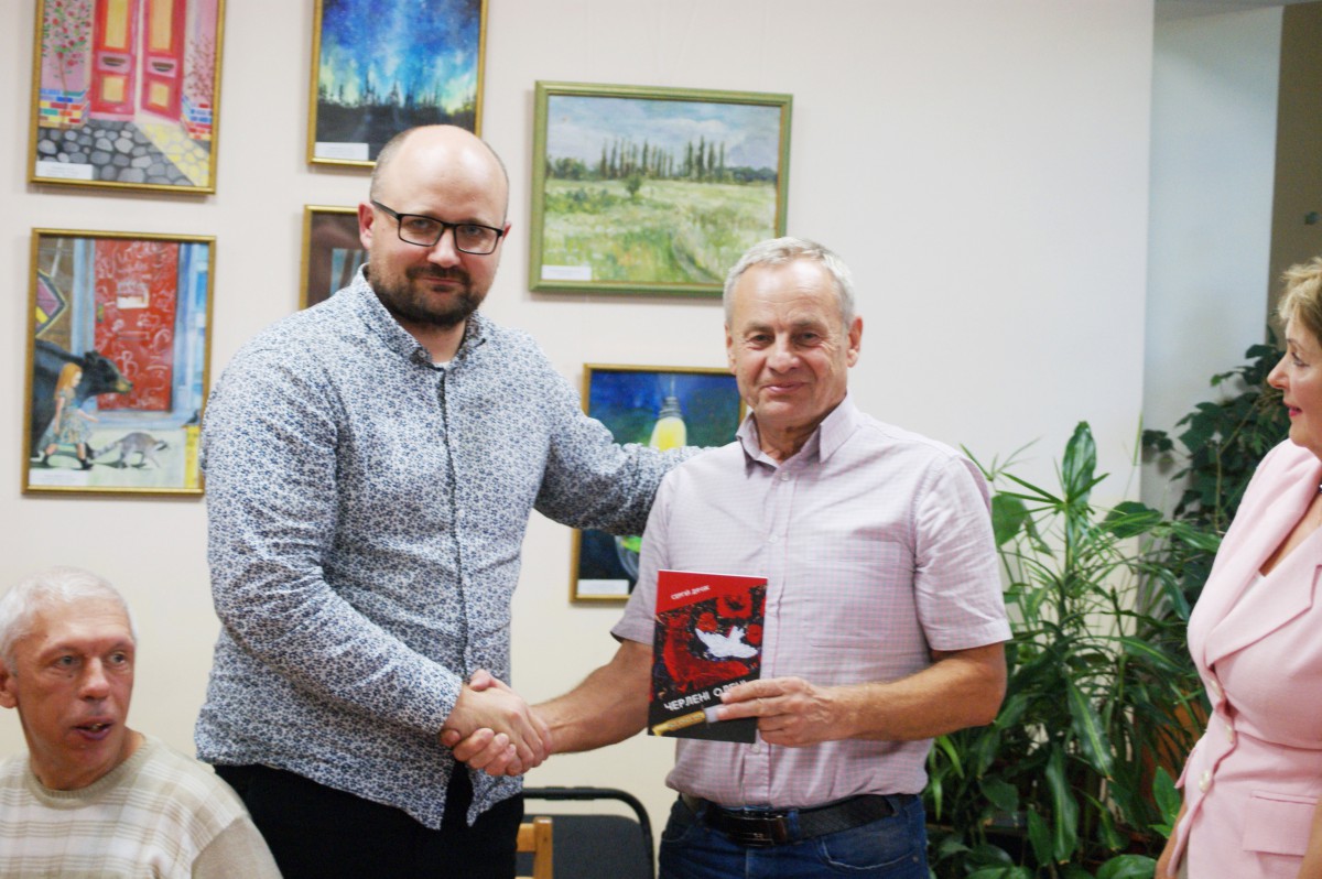 12 вересня 2018 р. в центральній бібліотеці відбулась презентація книги «Черлені олені» від Сергія Дячука. (Історика, письменника, працівника Державного музею та друкарства). Його називають «бориспільським гуцулом», з дитинства жив в Борисполі і з школярських років є читачем бібіліотеки… Свою промову Сергій почав з того, як цінно для нього, що за круглим столом бібіліотеки, схожим на «гуцульську світлицю», зібрались дорогі для нього люди, однодумці, які своїми поступами легко «сприяли» виходу цієї книги у світ. Це Катерина Шабан, яка першою побачила і оцінила творчість Дячука, Борис Шапіро, який надав кошти і знайшов вихід на директора видавництва «Адеф-Україна» Ігоря Шпака. Як зазначив Борис Абрамович, «добрі справи йдуть від добрих людей і до добрих людей». Користуючись нагодою директор бібліотеки Жанна Кручиніна привітала депутата міської ради Катерину Шабан з днем народження.