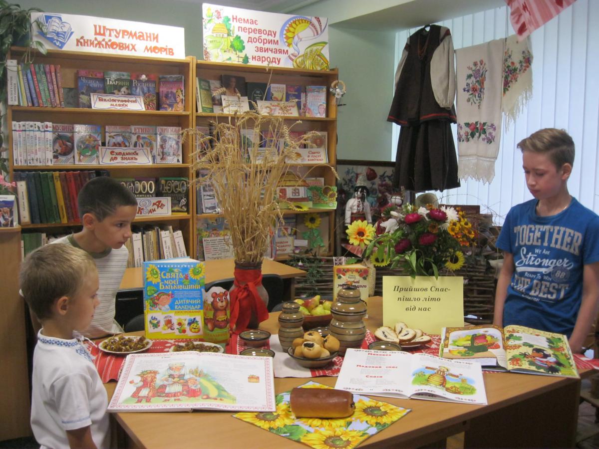 Свято Медового спаса відмічали і в Бориспільській міській дитячій бібліотеці, де працює народознавчий клуб «Калинонька». Цього дня на відділі обслуговування 5-6 класів була оформлена яскрава виставка-інсталяція «Прийшов Спас – пішло літечко від нас». Видання про народні звичаї та традиції, представлені на виставці допомогли читачам та гостям бібліотеки дізнатися про різні назви свята Спаса, його історію, особливості цього свята та народні прикмети.